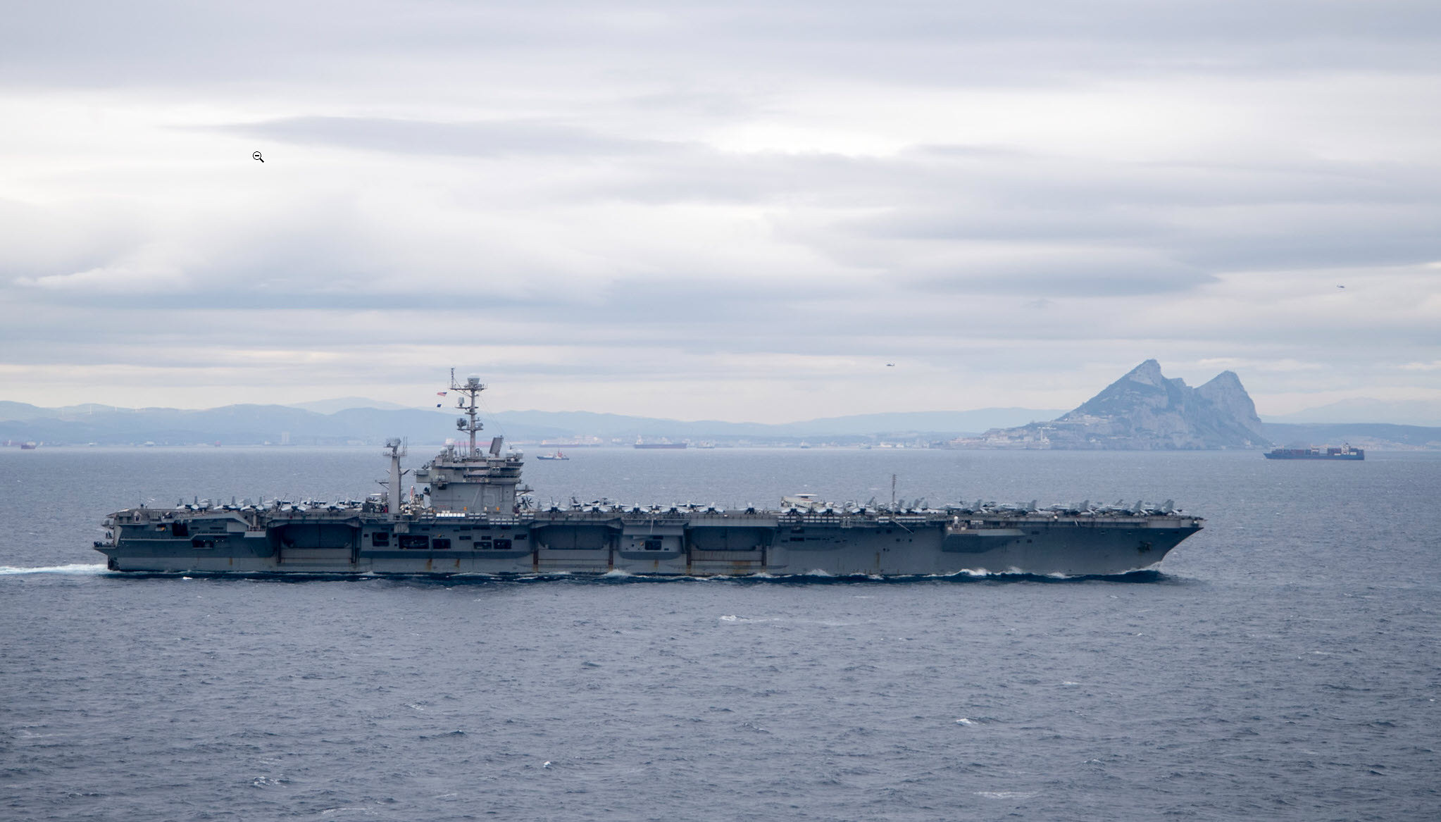 Авианосец типа "Нимиц" USS Harry S. Truman (CVN 75) проходит через Гибралтарский пролив (5 декабря 2019 года)