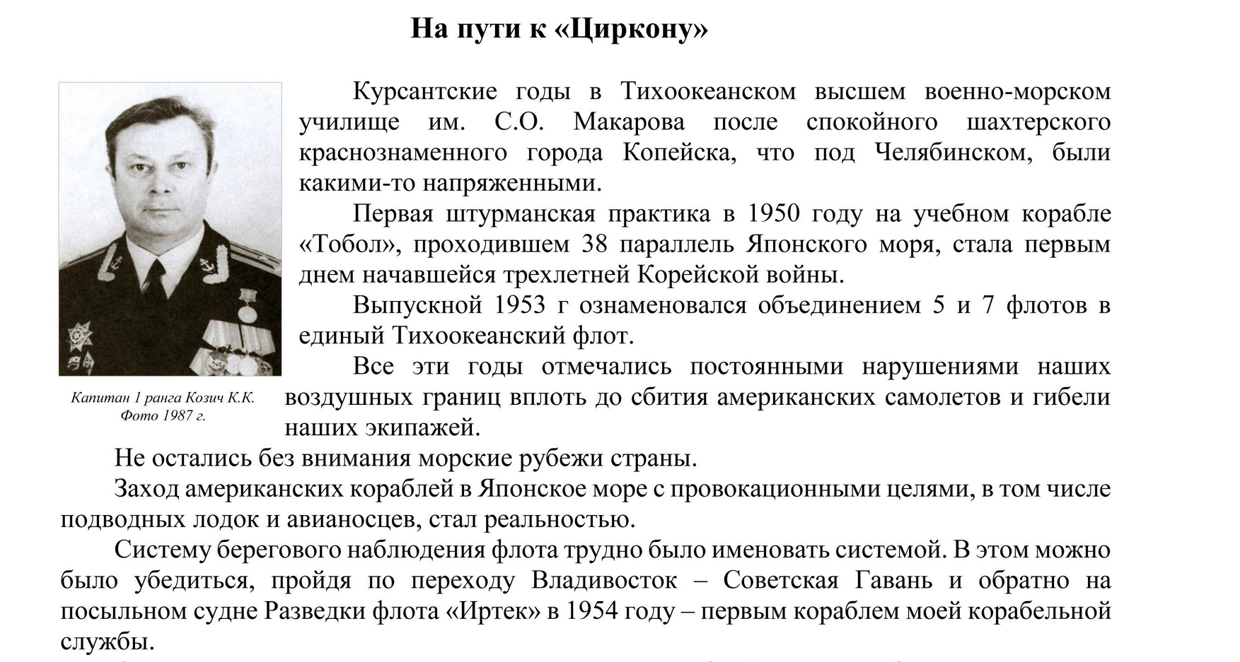 Козич К.К. - На пути к Циркону (с сайта СОВЕТ ВЕТЕРАНОВ РАЗВЕДКИ ВМФ)