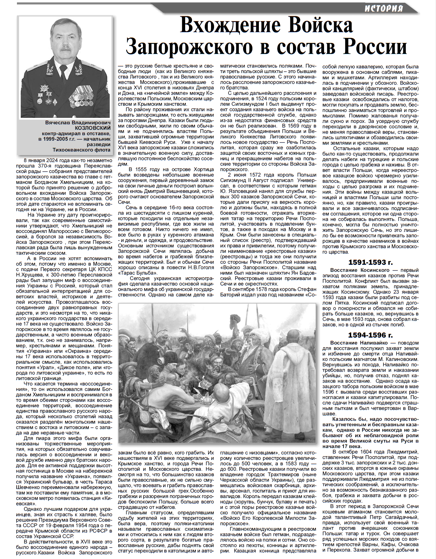 Козловский В.В. - "Вхождение Войска Запорожского в состав России", часть 1(Служу отечеству ДВ №4 2024 год)