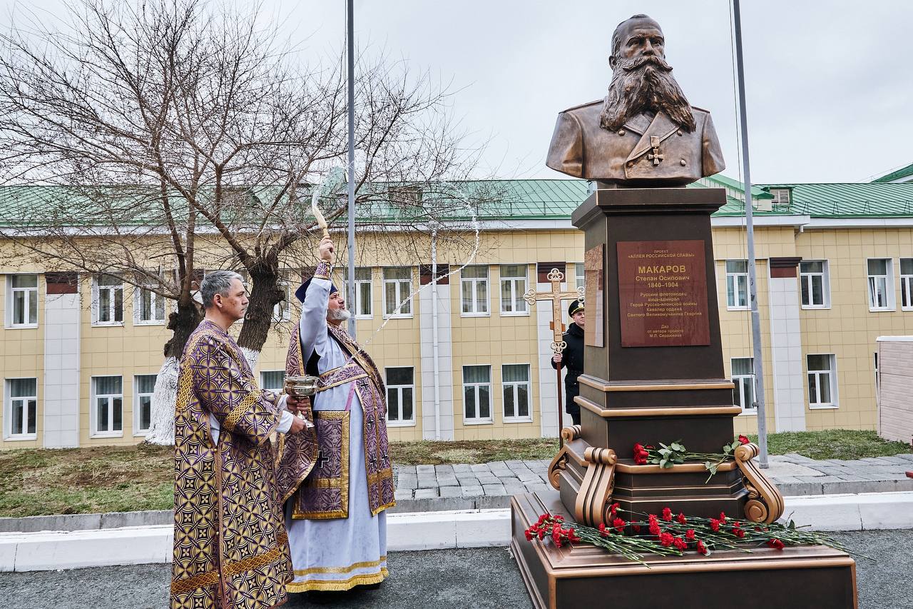 В Тихоокеанском высшем военно-морском училище во Владивостоке торжественно открыли памятник адмиралу Степану Осиповичу Макарову, чьё имя было присвоено учебному заведению в 1954 году.