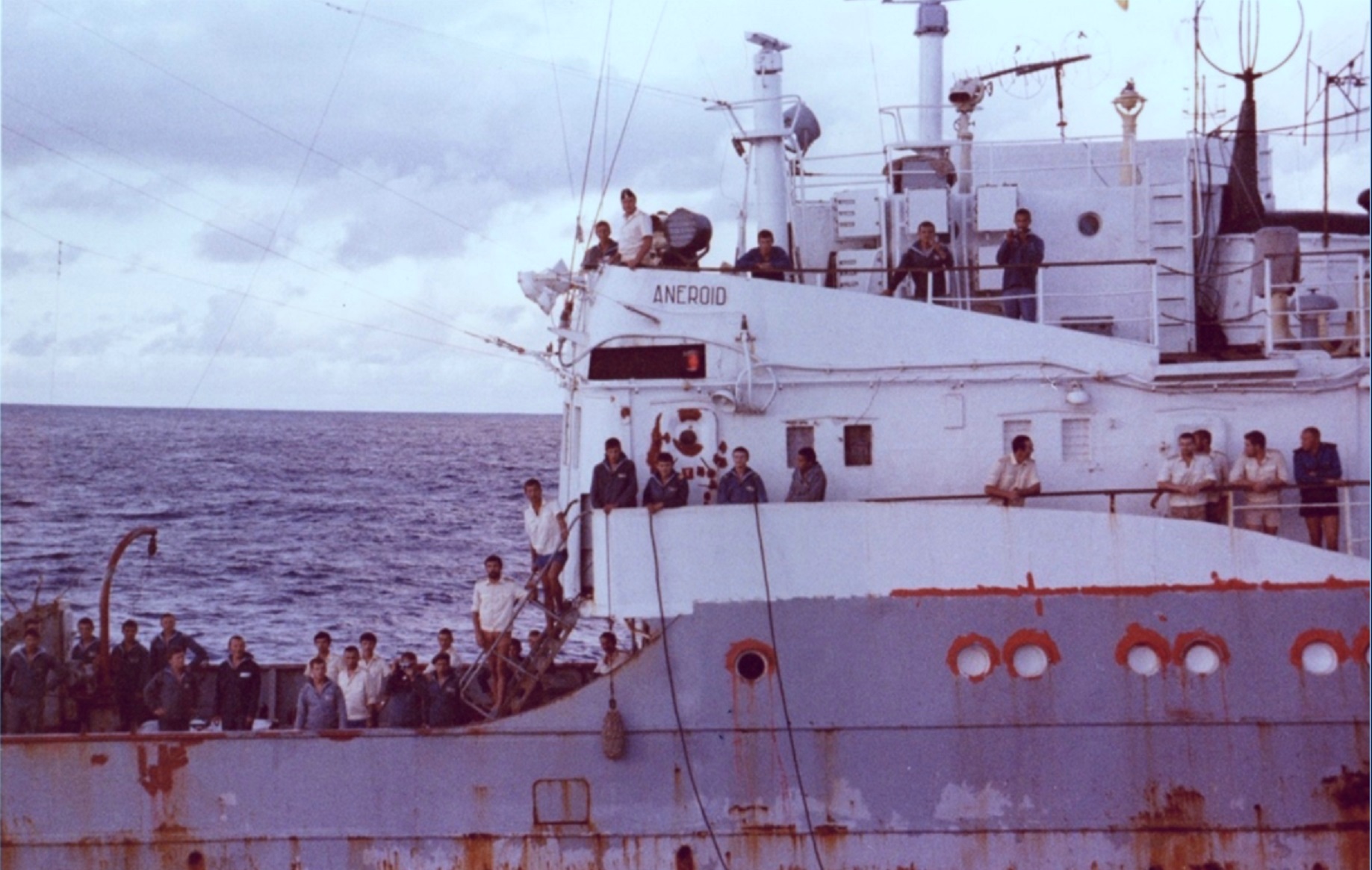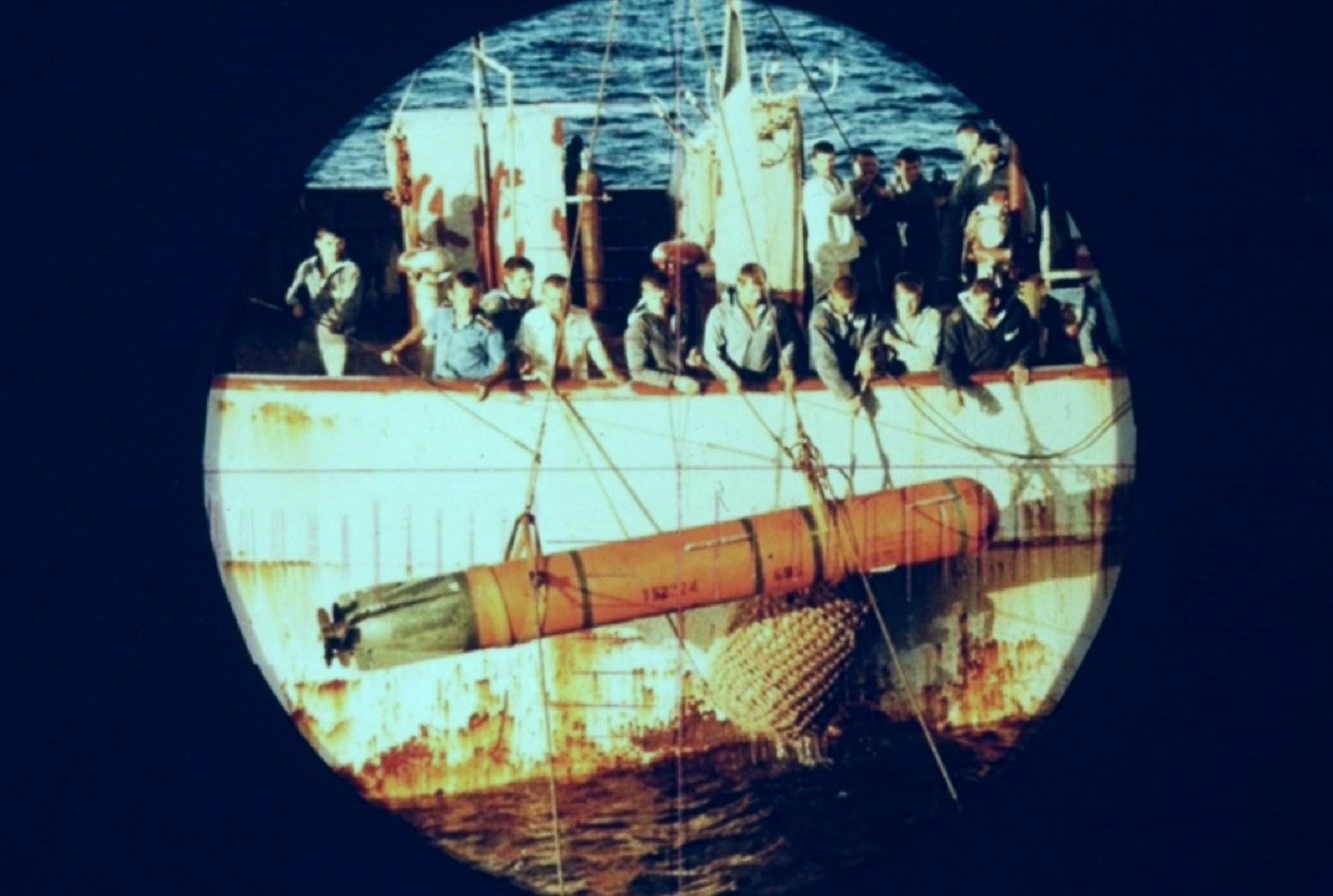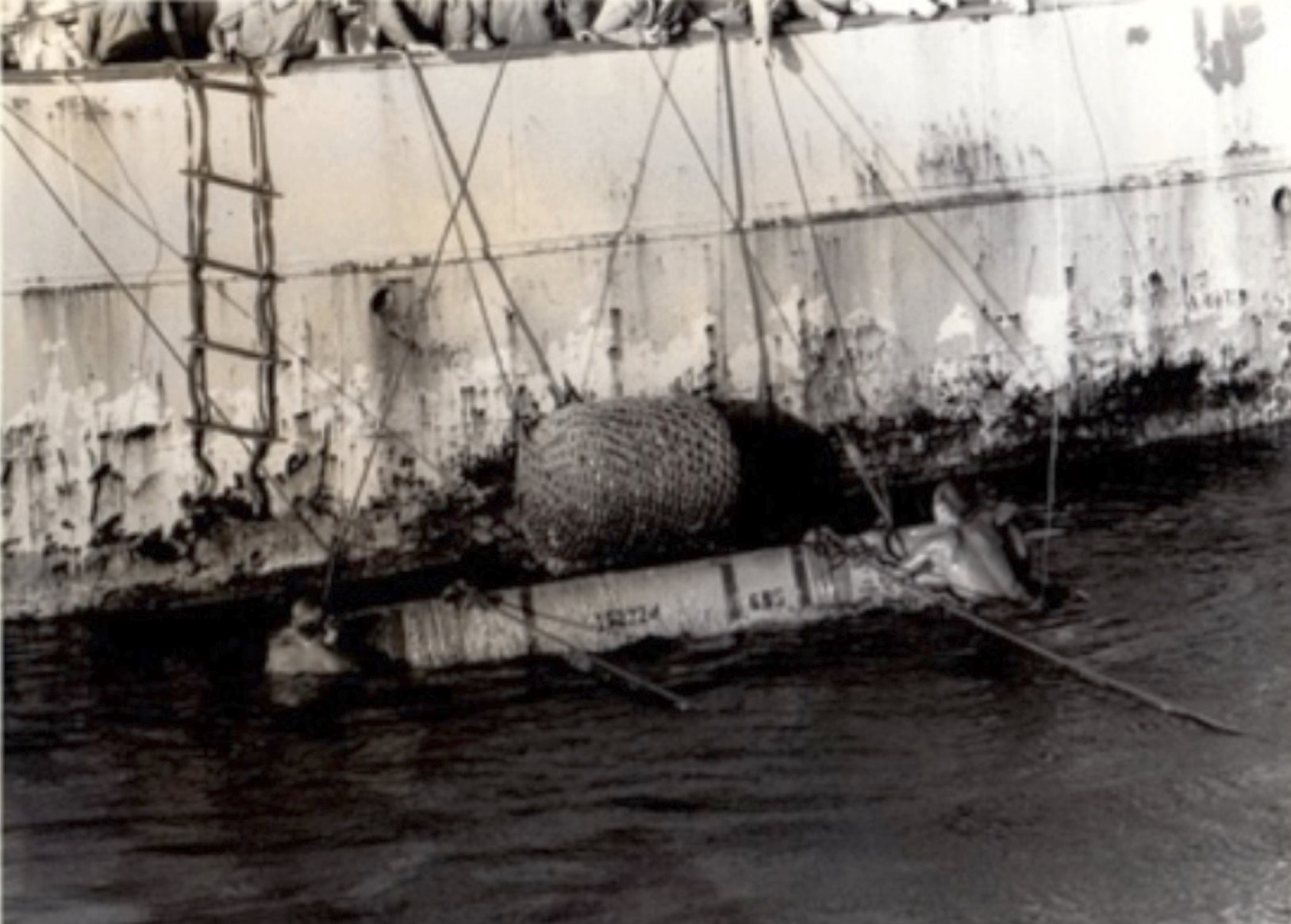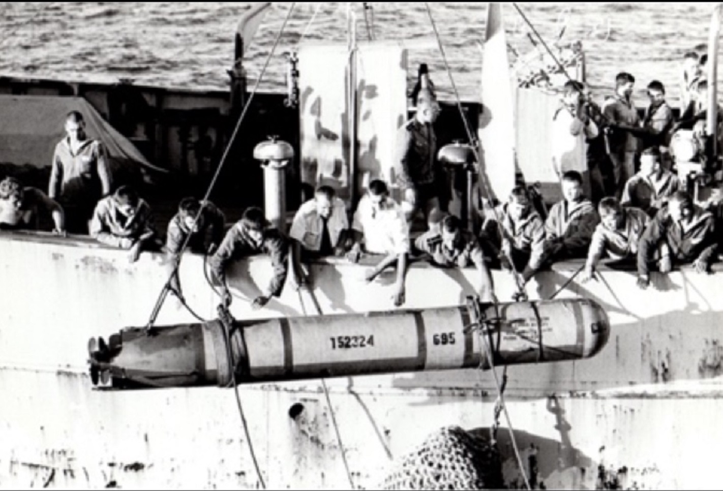 "12 августа 1979 года американская ПЛАРБ "Сэм Хьюстон" (SSBN-609) в полигоне в районе о. Гуам производила стрельбы практическими торпедами Мк37. Одну из них поднял на борт советский МРЗК "Анероид". Привожу несколько снимков данного события, как его видели участники с той стороны. Правда, торпеду потом вернули, но это уже другая история" - Разведывательные корабли ВМФ(2), Old Seaman.