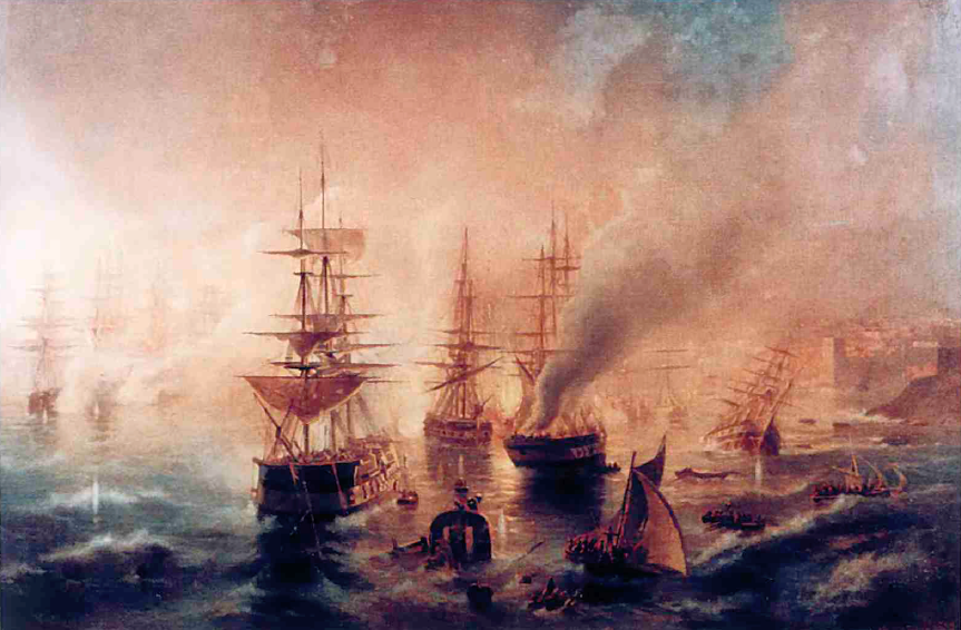 18 ноября 1853 г. в Синопской бухте на южном побережье Черного моря произошло последнее крупное сражение в истории парусного флота.Турецкая эскадра Осман-паши вышла из Константинополя для десантной операции в районе Сухум-кале и сделала остановку в Синопской бухте. Русский Черноморский флот имел задачу воспрепятствовать активным действиям противника. Эскадра под командованием вице-адмирала П.С. Нахимова в составе трех линкоров во время крейсерского дежурства обнаружила турецкую эскадру и заблокировала ее в бухте. Была затребована помощь из Севастополя.