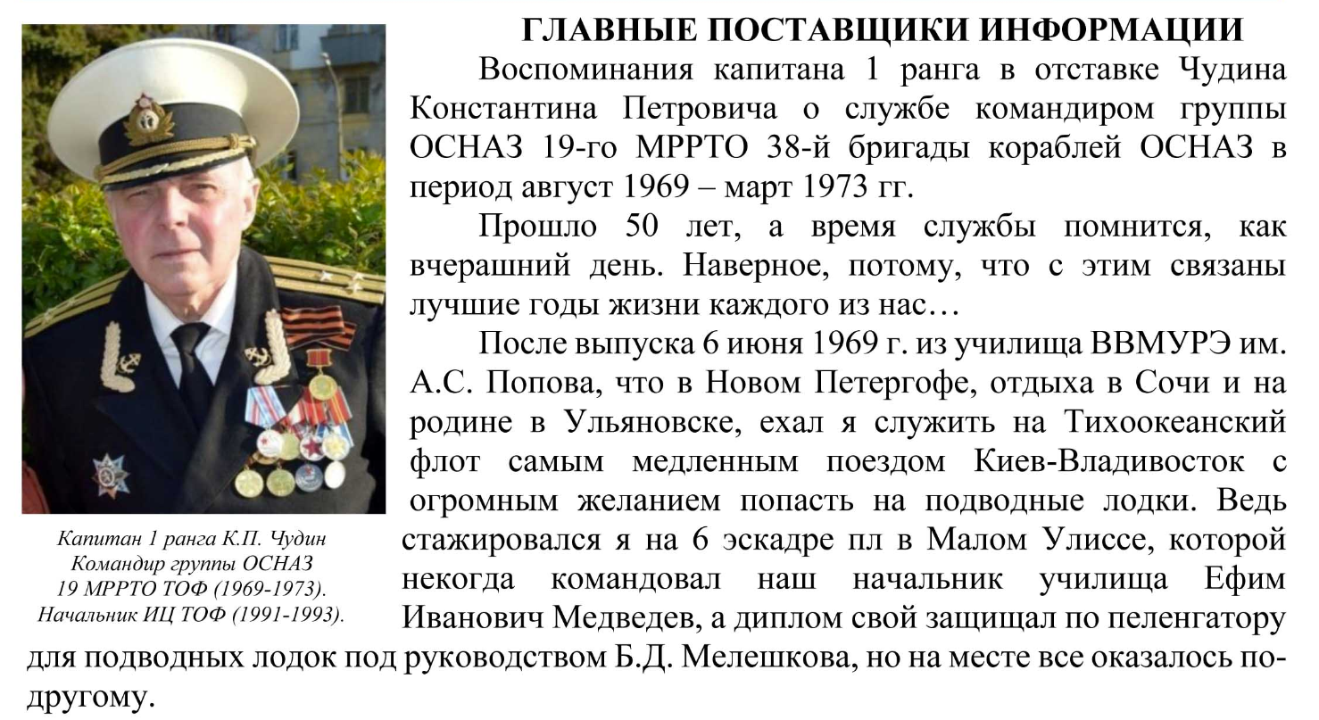 Капитан 1 ранга в/о К.П. Чудин - Воспоминания.(материал с сайта СОВЕТ ВЕТЕРАНОВ РАЗВЕДКИ ВМФ)