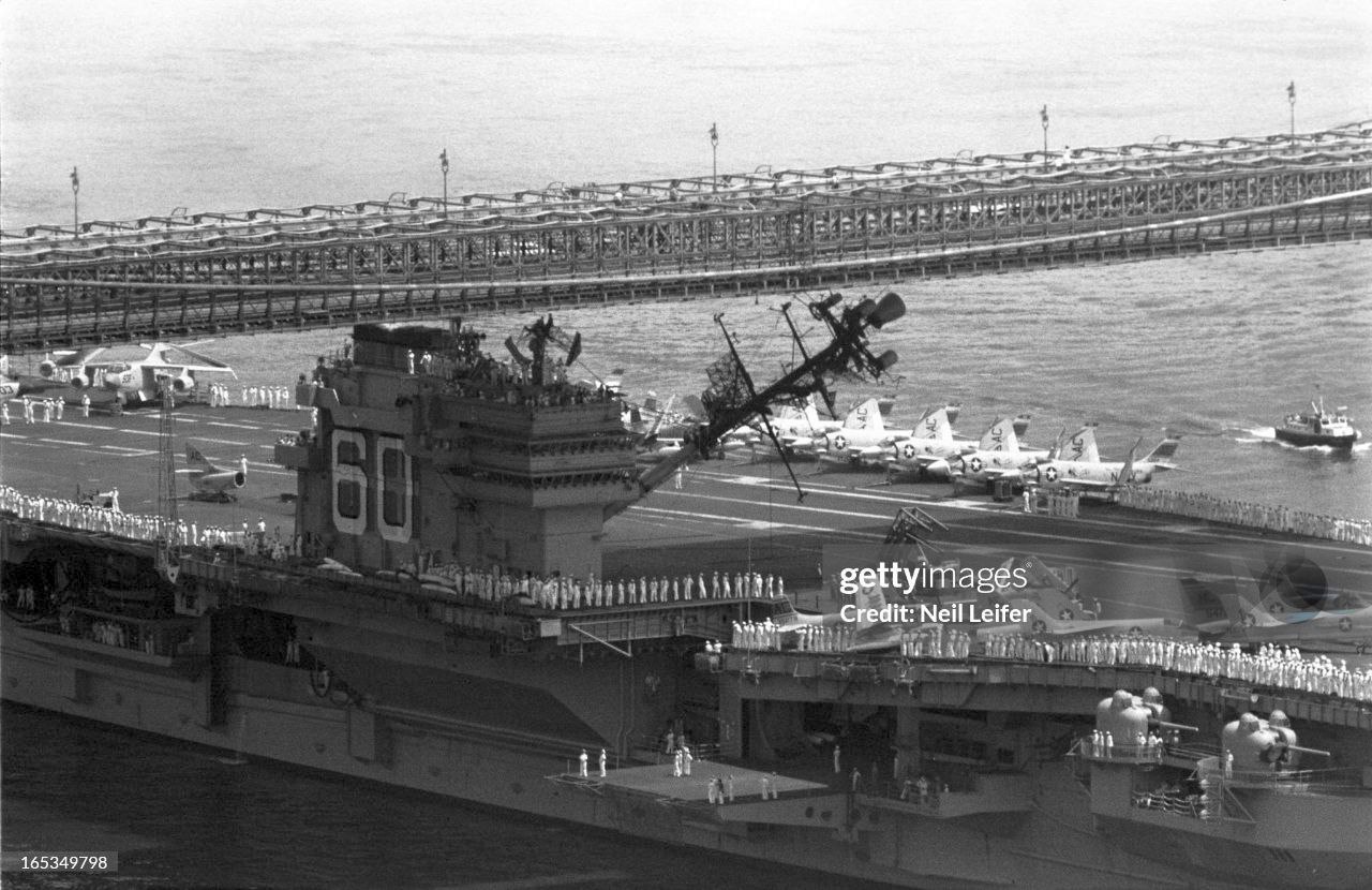 Складывающиеся мачты на американских авианосцах: на первых двух фото "Саратога" (CV-60), затем "Индепенденс" (CV-62), а на последнем "Констелейшен" (CV-64).