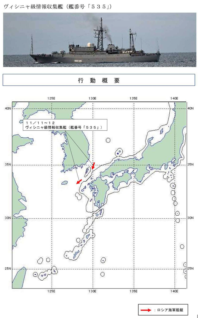 Средний разведывательный корабль «Карелия» (535) ВМФ России 11 ноября 2024 года через Цусимский пролив вошел в Восточно-Китайское море (Телеграмм-канал - WarShip).