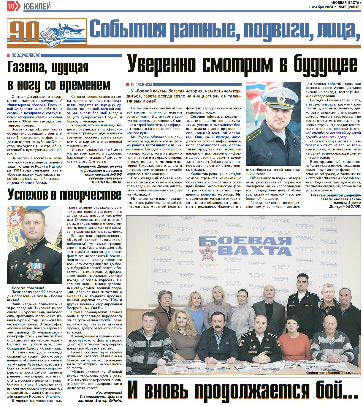 Газета «Боевая вахта» Тихоокеанского флота сегодня отмечает 90 лет со дня образования