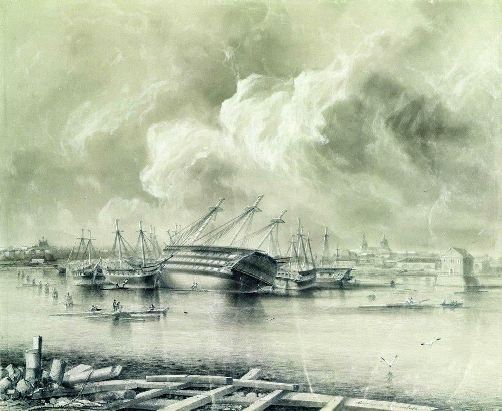 Боголюбов Алексей Петрович (1824-1896) "Кронштадт после наводнения 7 ноября 1824 года" |