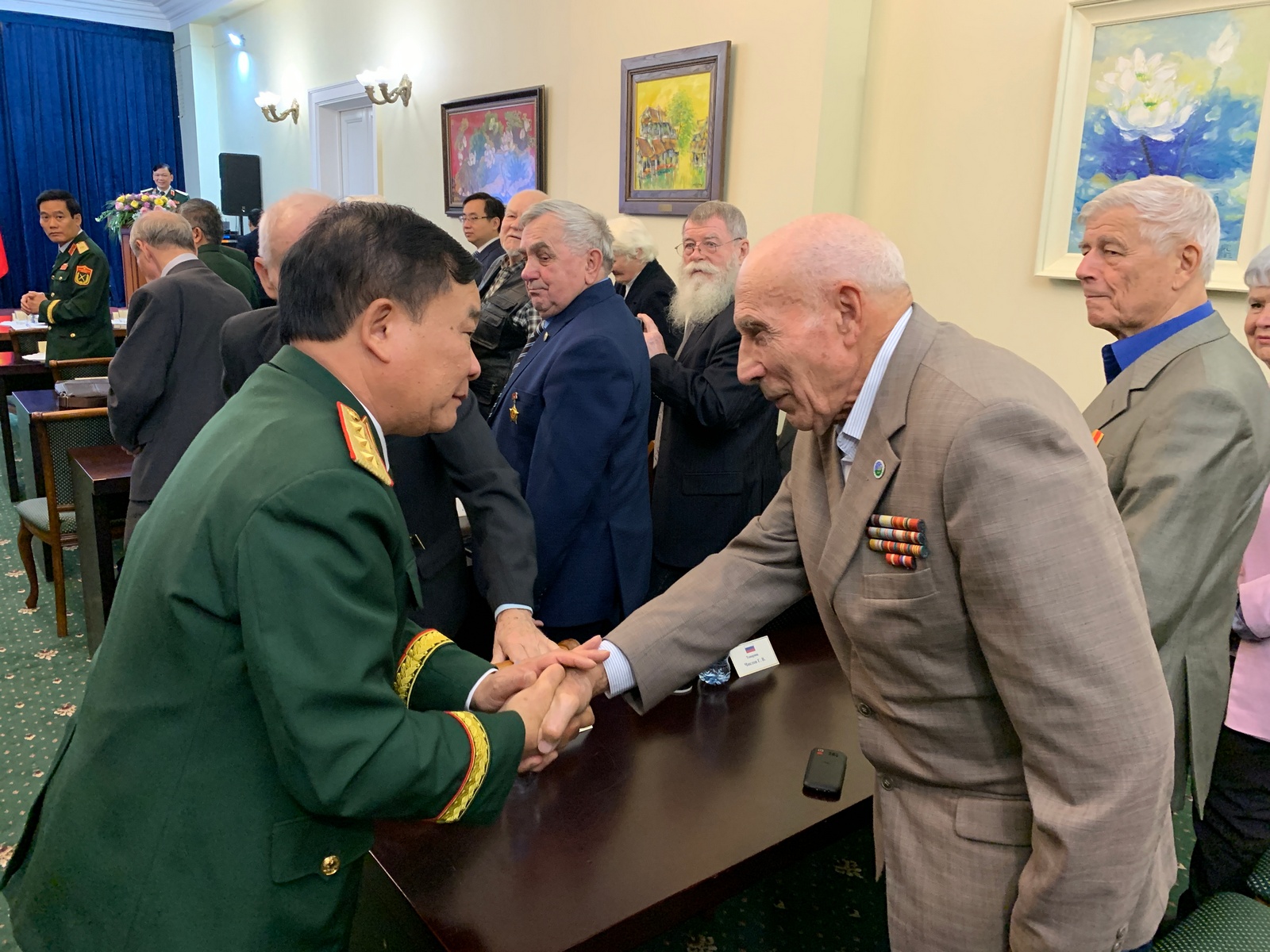 Заместитель министра национальной обороны Вьетнама Хоанг Суан Тиен тепло приветствует ветеранов войны во Вьетнаме.