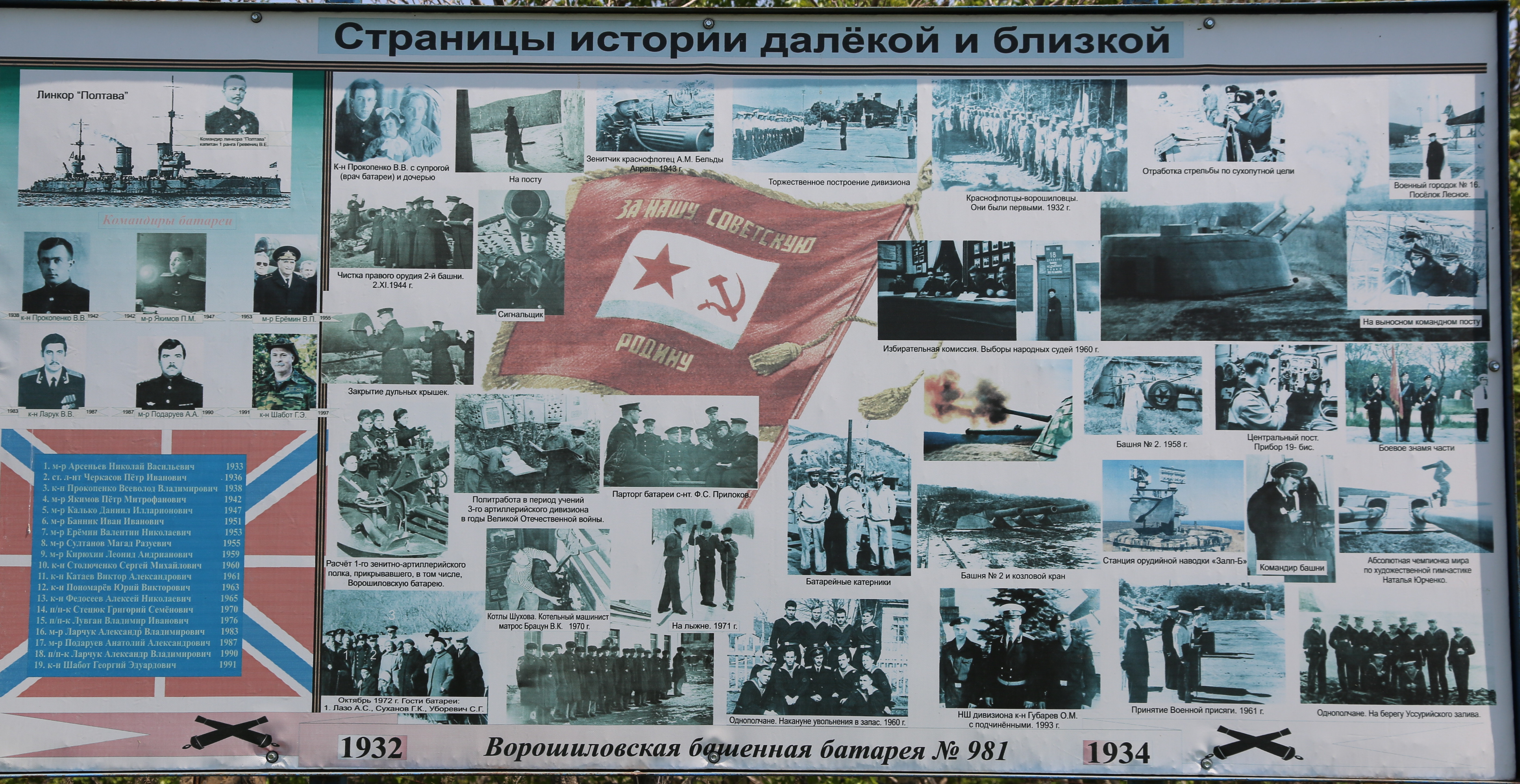 По решению Реввоенсовета СССР в 1934 г. создаётся батарея для защиты города Владивостока с моря и с суши. Место размещения определила специальная комиссия во главе с Климентом Ворошиловым. Вооружение батареи составляли две трехорудийные установки калибром 305 мм с линейного корабля «Полтава».