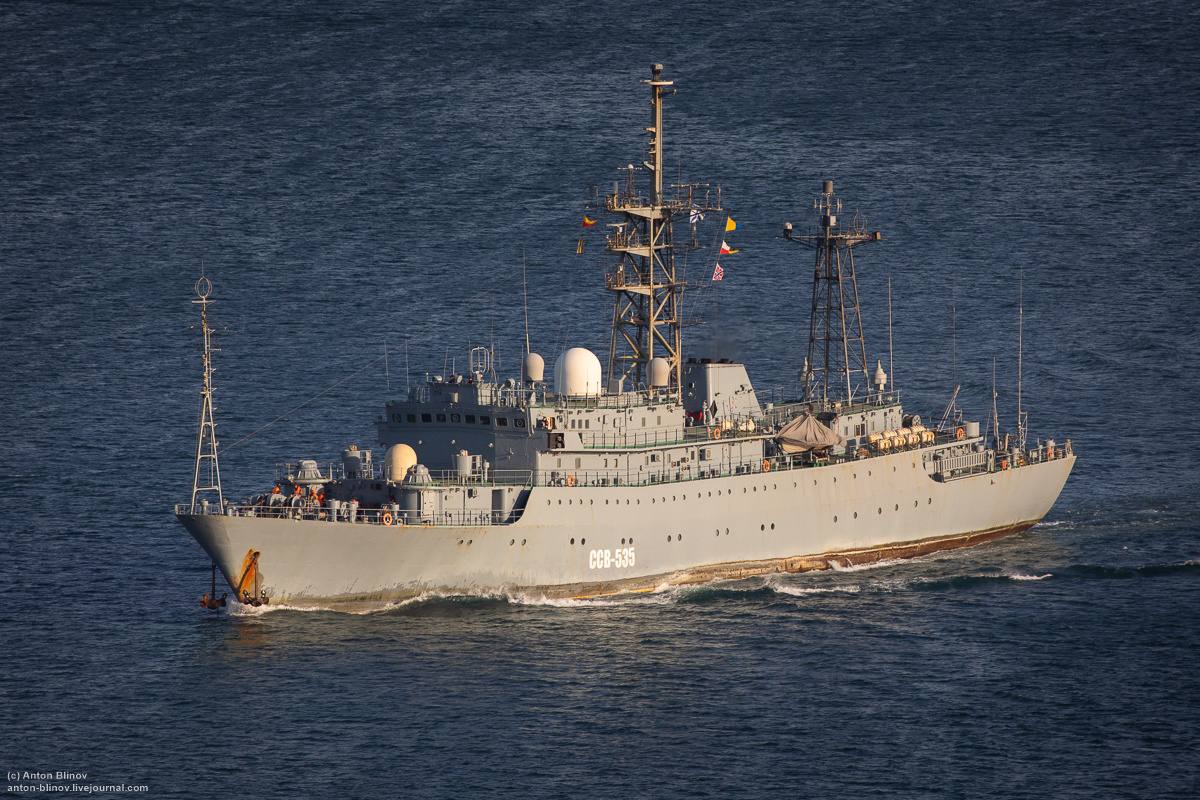 Средний разведывательный корабль (СРЗК) «Карелия» Тихоокеанского флота на заходе в бухту Золотой Рог.