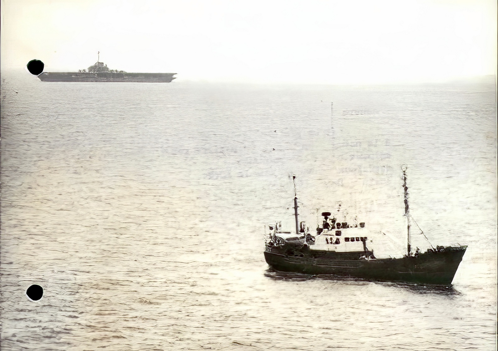 "Датируется 09.04.1965г. МРЗК "Барометр" в р-не о. Вьекес. На заднем плане АВВ "Окинава"" - Разведывательные корабли ВМФ [2], Old Seaman.