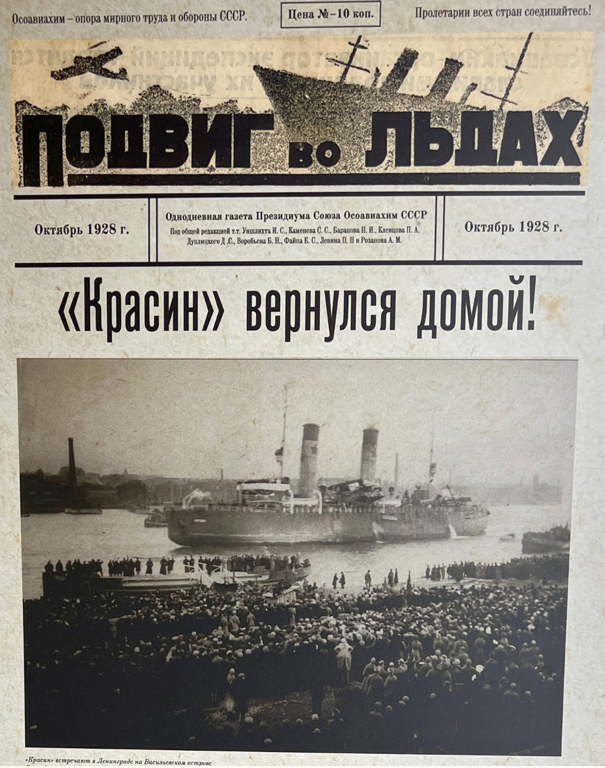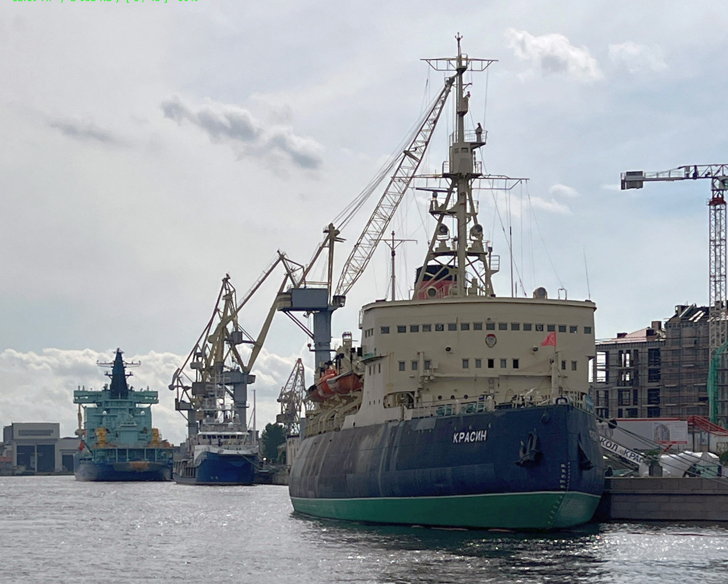 Ледокол "Красин" и атомный ледокол "Чукотка", достраивающийся у стенки Балтийского завода.