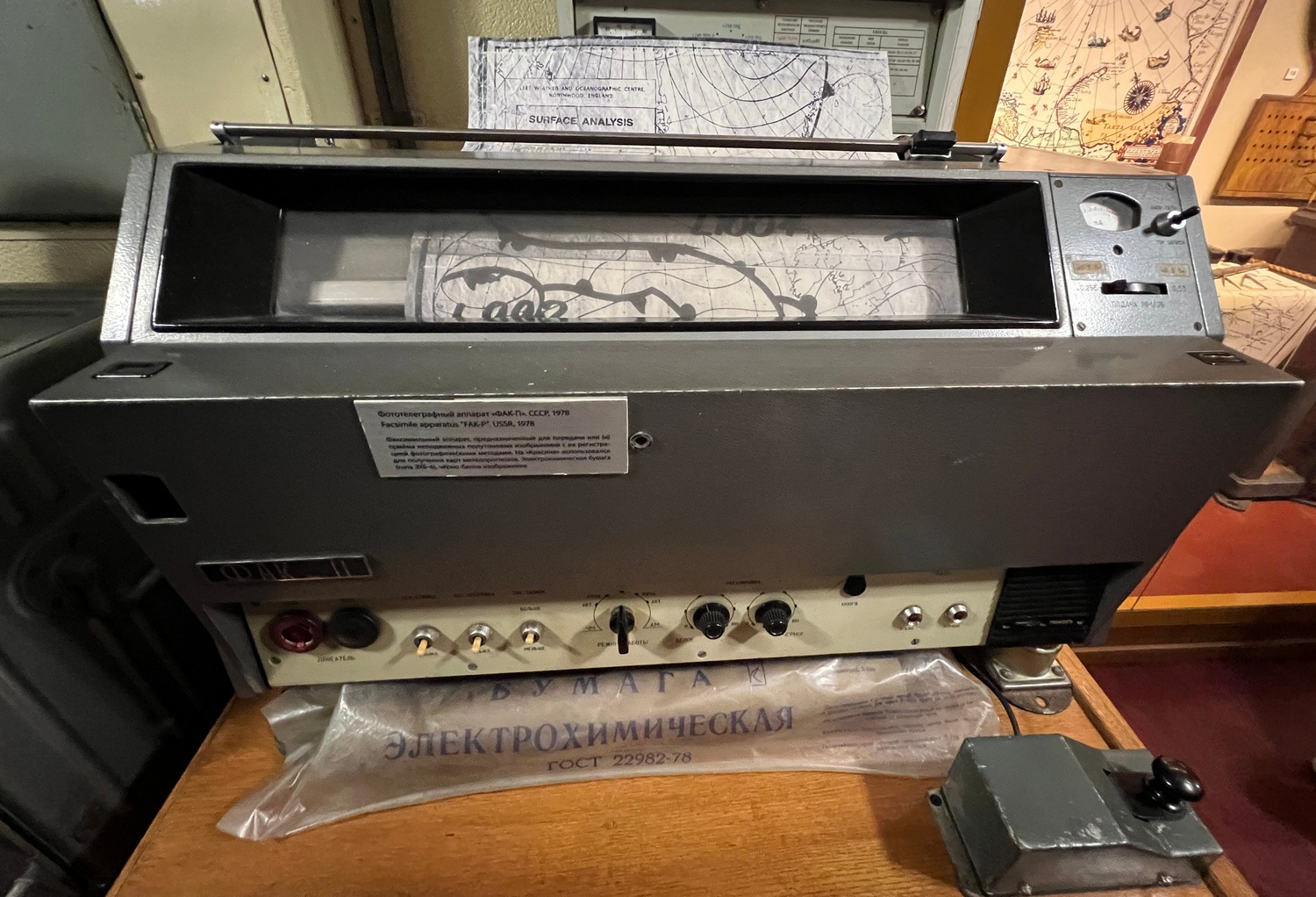 Фототелеграфный аппарат "ФАК-П" СССР, 1978 год. Факсимильный аппарат, предназначенный для передачи или (и) приема неподвижных полутоновых изображений с их регистрацией фотографическим методом. Черно-белое изображение выводится на электрохимической бумаге (ЭХБ-6).