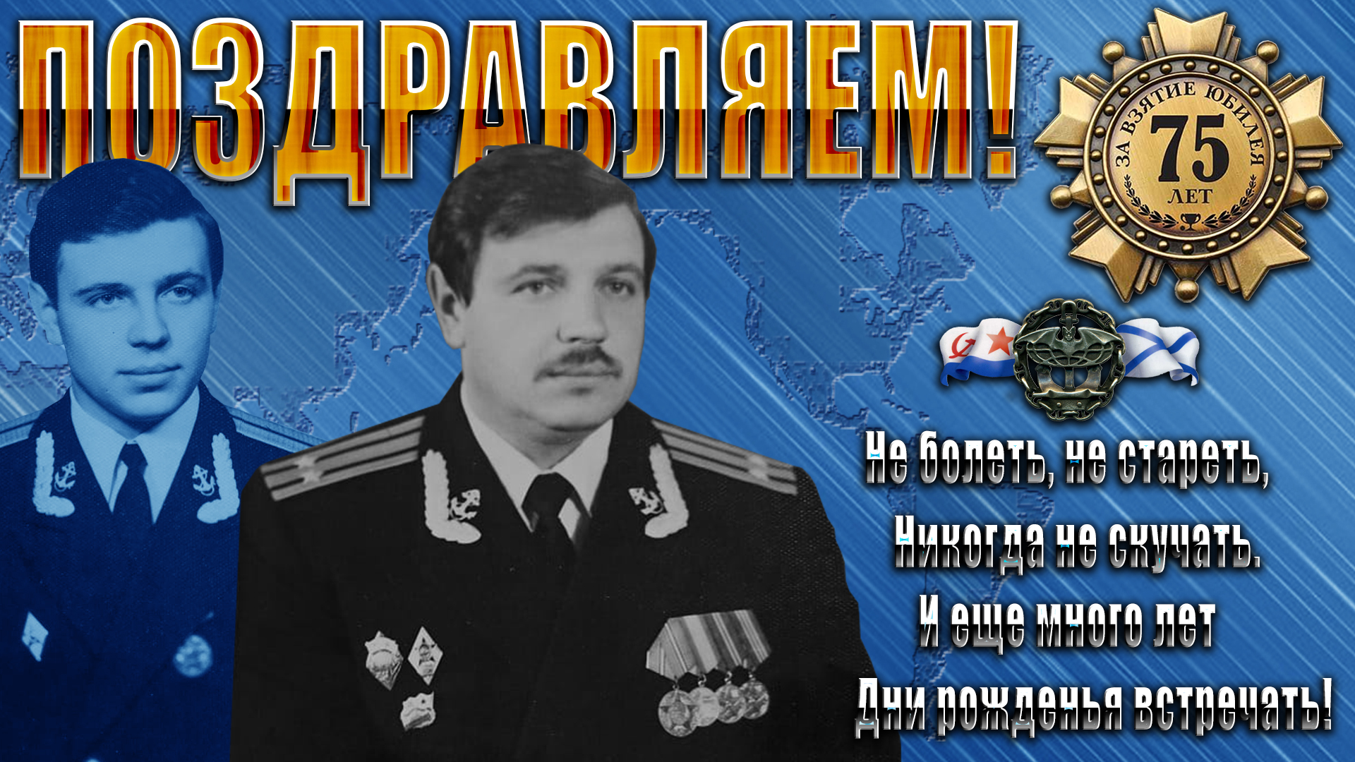Ветераны разведки ТОФ сердечно поздравляют Вас с юбилеем - 75-летием со дня рождения! Искренне желаем здоровья, любви ближних, семейного благополучия, успехов во всём и долгих лет жизни!
