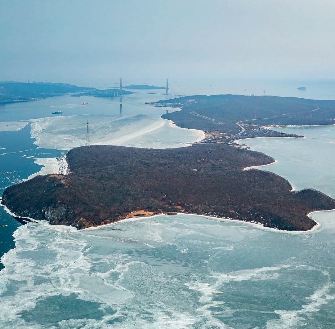 "Остров Елены на переднем плане слева (видны останки строений флотского радиоотряда), район Канала, полуостров Саперный Русского острова, мост. На той стороне Босфора-Восточного бухты Диомид и Улисс (фото - @matveyvlc)" - Форумы Авиабазы, Панорамы баз, гарнизонов, верфей, известных исторических мест.