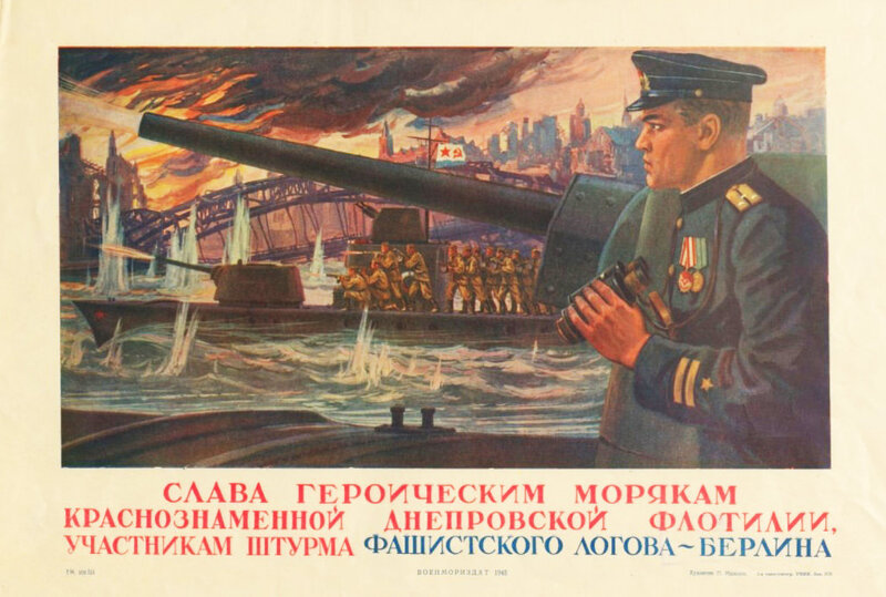 Плакат посвященный морякам флотилии в битве за Берлин.