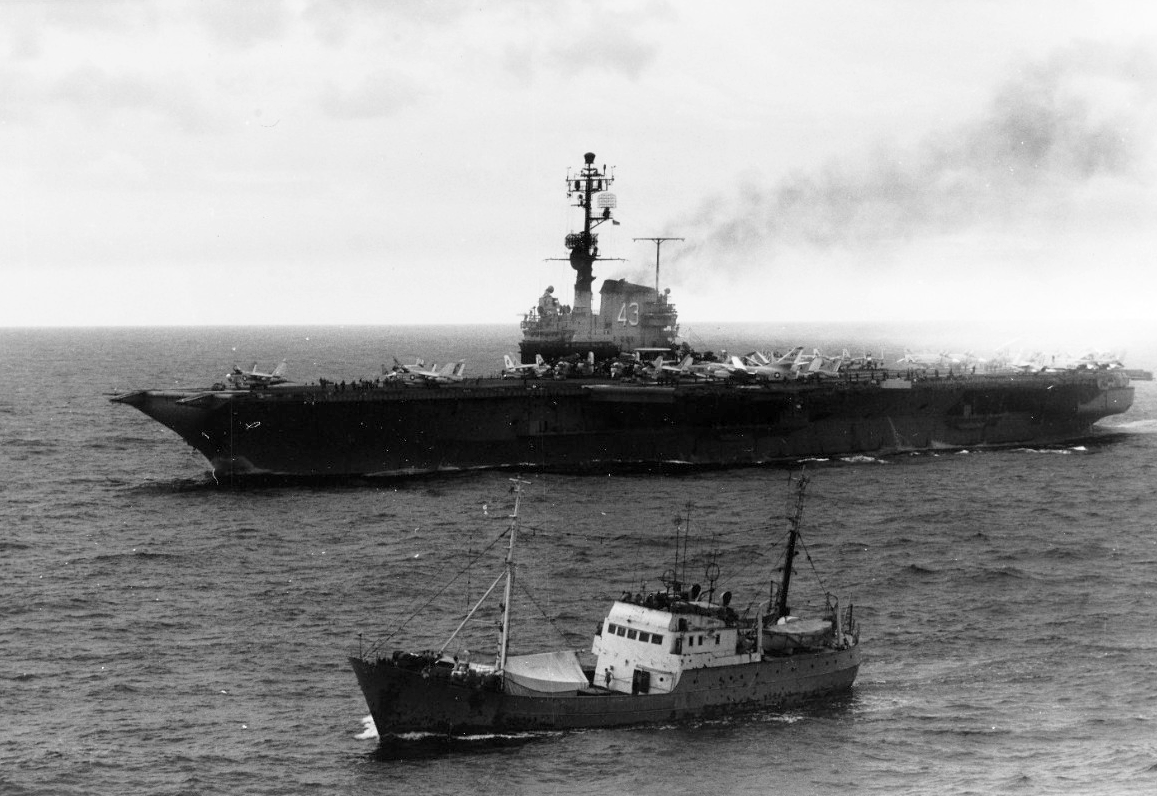 28 октября 1969 года, Тонкинский залив мрзк "Гидрофон" сопровождает авианосец США Коралл Си (USS Coral Sea (CVA-43)).