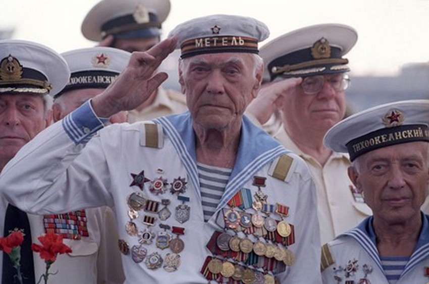 Ветераны Тихоокеанского флота на праздновании Дня воинской славы России, 10 августа 2001 года.