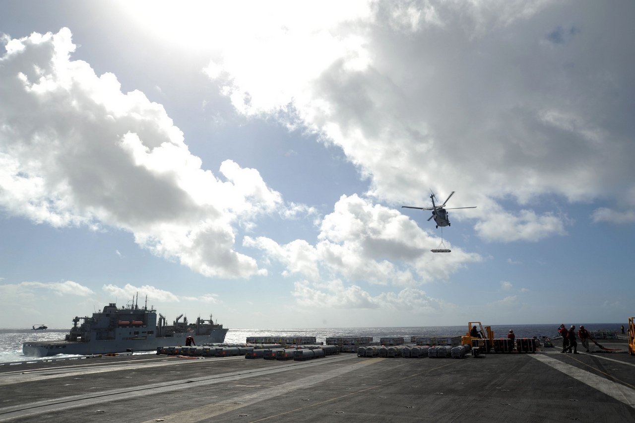 23 октября. Торжественный пролет Первого авиакрыла над своим авианосцем после прохода Гибралтара и выхода в Атлантический океан.
