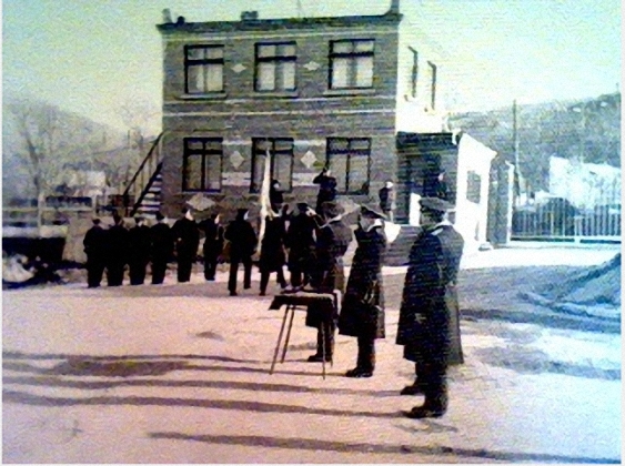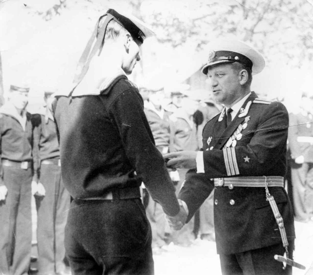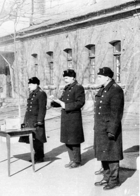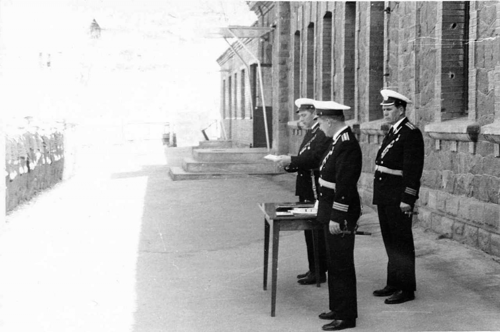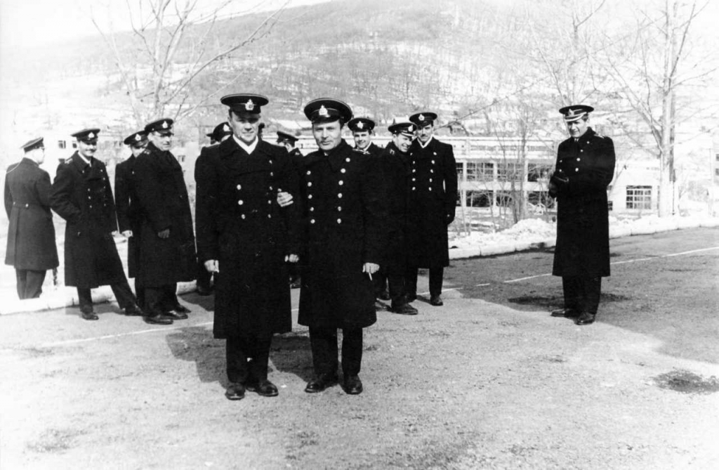 В центре стоят: капитан 2 ранга Иванников И.И., капитан 1 ранга Лукаш