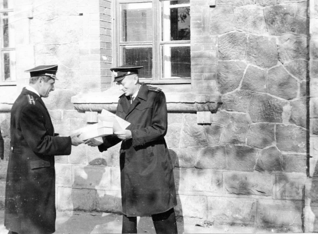 Проводы в запас подполковника Дрейчука Б.Д. - начальника тыла 19 ОМРТО. Командир отряда Лукаш Д.Т. вручает ценный подарок Дрейчуку Б.Д., октябрь 1969 год. |