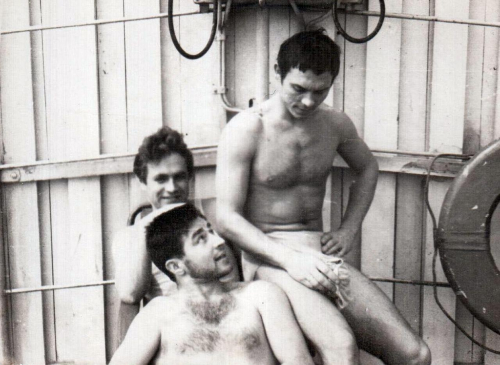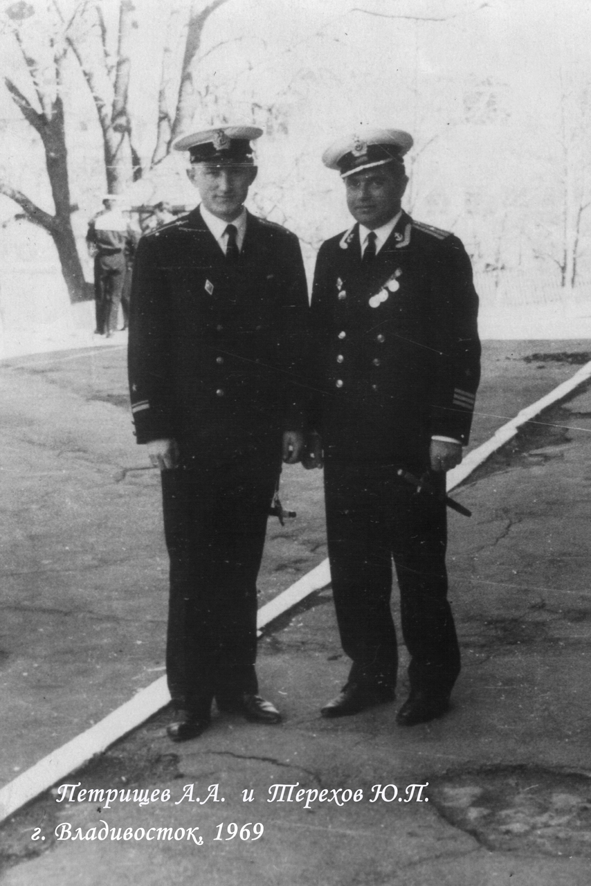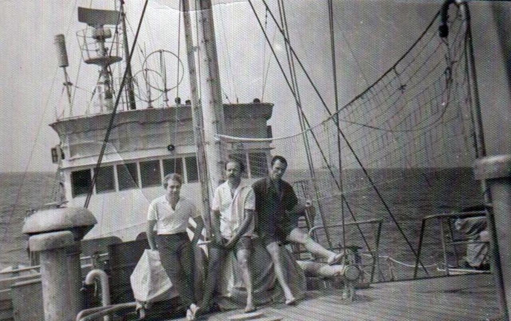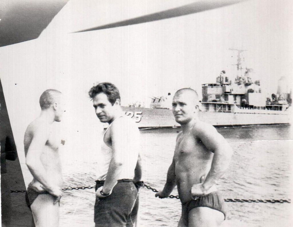 "Капитан 3 ранга Таскаев Константин Александрович (начальник радиотехнической службы в отряде, затем – начальник службы на «Приморье»), капитан-лейтенант Терехов Юрий Павлович". Лукаш Д.Т. |