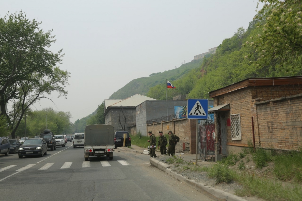 Развилка шоссе - прямо к КПП, налево дорога к штабу |