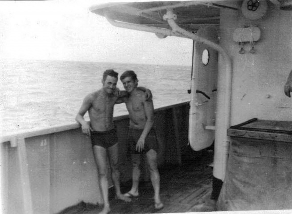 "Первого-не помню, радиотелеграфист Сметанин Анатолий,электрик БЧ-5 Каменев Сергей ". |
