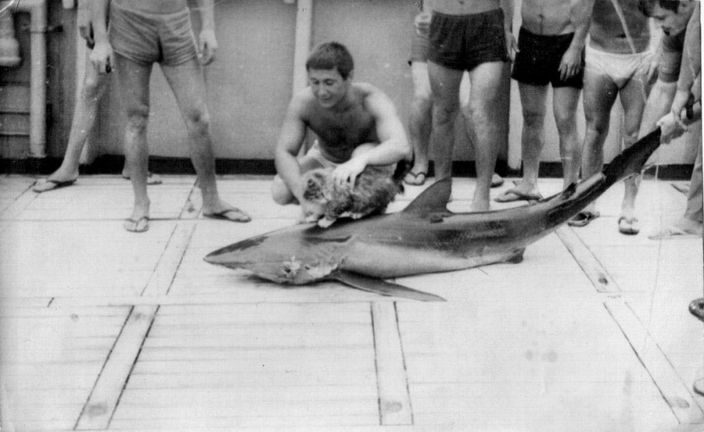 Из архива Кривошеева В.В. МРЗК "Анероид" Кириллин В., Кривошеев В. и акула. |