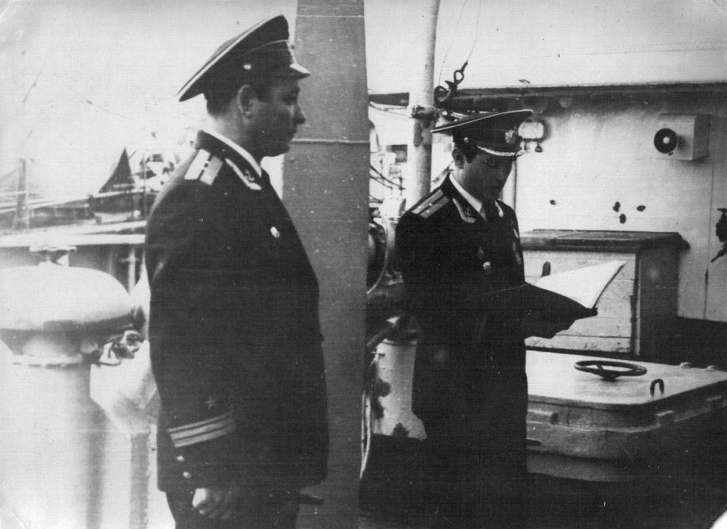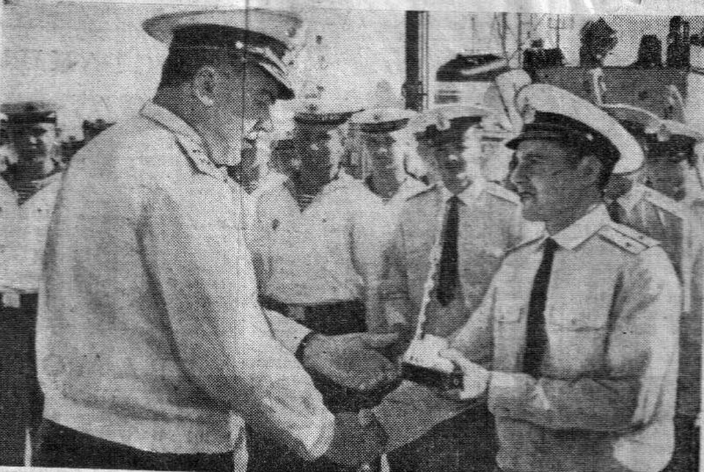 Старший лейтенант Пивоваров В.К. принимает командование мрзк "Анероид" от капитан-лейтенанта Смольянова, 1975 год . |