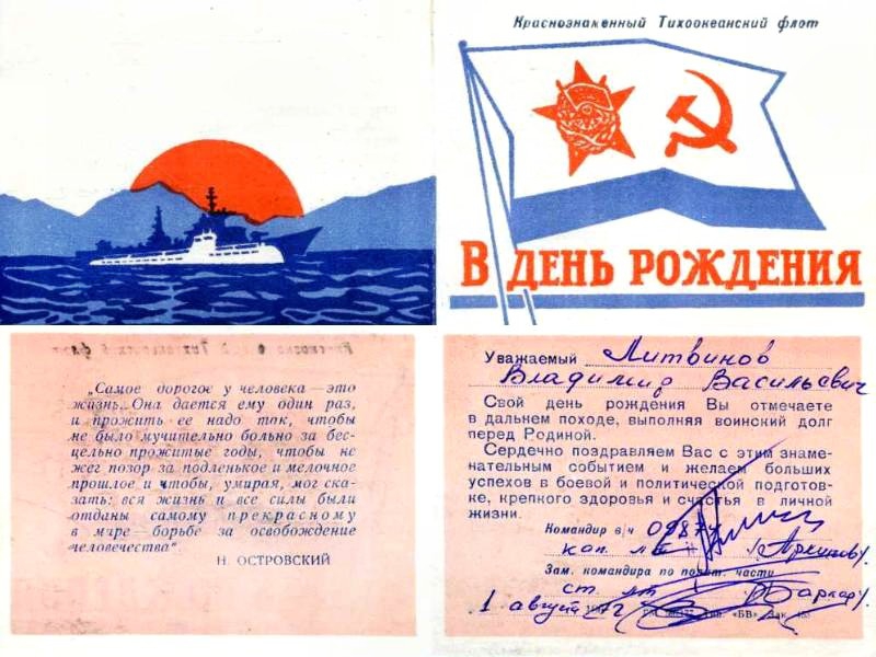 МРЗК "Анероид" 1972 год, о. Гуам. Удостоверение моряка, отмечающего свой день рождения в дальнем походе. |