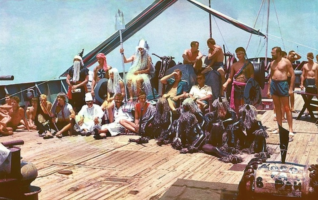Из архива Волкова А.Е. День ВМФ 1989г . Нептун со свитой. |