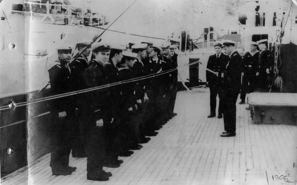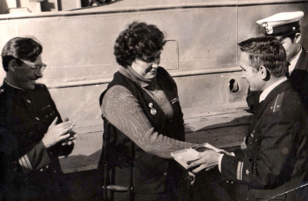 1973 год, Владивосток 37 причал. На марше экипаж МРЗК Дефлектор. |