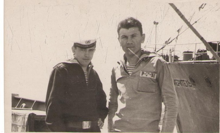 "Призывался я из Кировской обл.в октябре 1961года, в ноябре начал учится в РТШ в/ч 25151 на радиотелеграфиста. 7 января 1962 года принял присягу,а в феврале нас 50 человек со всего отряда отправили в Киев, где я познакомился с Садыковым Юрой, мы учились в одной роте на радиометристов ОСНАЗ. В августе1962 года мы прибыли на 6-й км, потом на 37 причал. Я, Смирнов Володя, Сычёв были распределены на "Голавль", а Юра Садыков на "Горбушу". В 1963 году "Голавль" и "Горбуша" ходили обеспечивать полёт Быковского и Терешковой, после были походы в районы Аляска, Канада, США до Мексики и через Гавайи на Камчатку и домой во Владик..." |