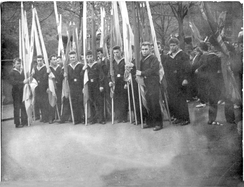 Октябрь 1971 год, сквер у памятника Г.И. Невельскому. Справа на снимке штурманский электрик ст. матрос Колесов. |