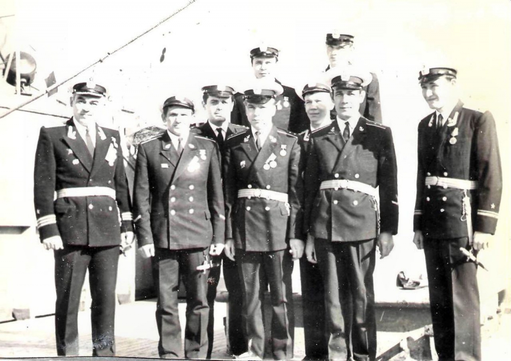 МРЗК "Дефлектор", командир капитан-лейтенант Кучин О.Л. с командой БЧ-5. ЮКМ, 70-е годы.