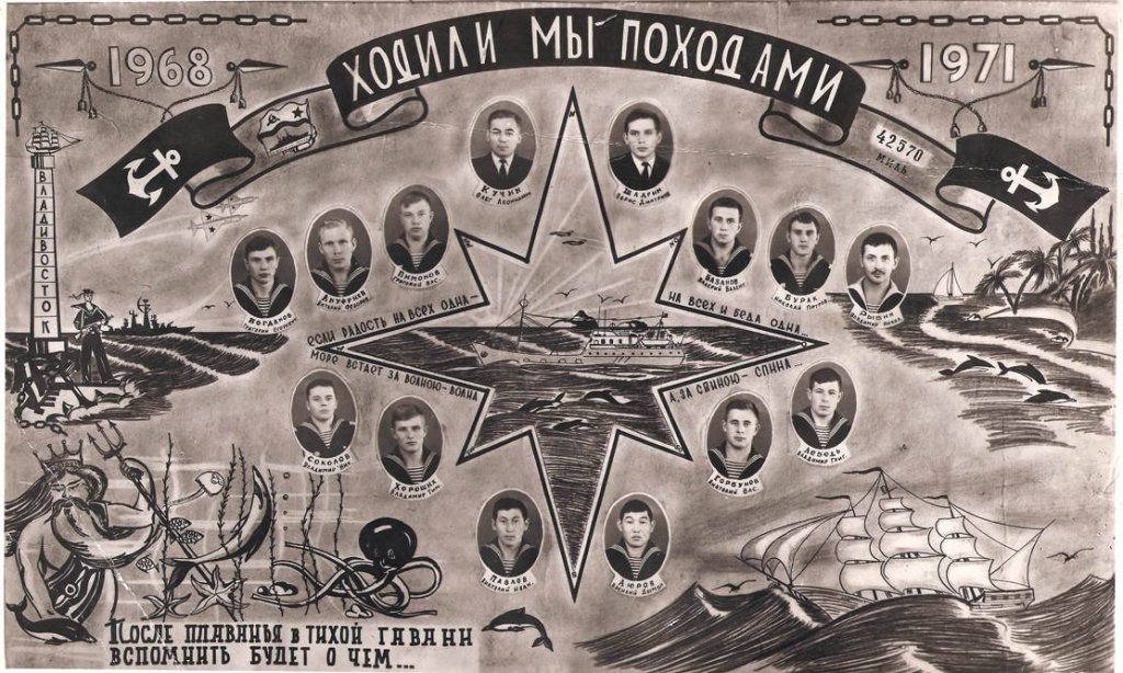 МРЗК "Дефлектор". Дембельская фотография моряков призыва 1968 года . |