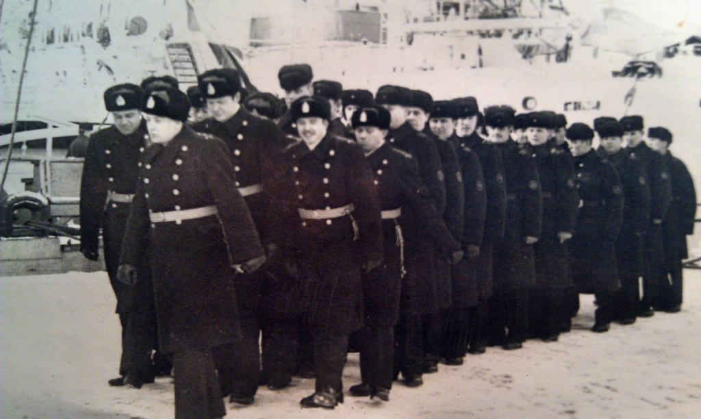 Экипаж МРЗК "Гидролог" в праздничном строю, осень 1973г. |