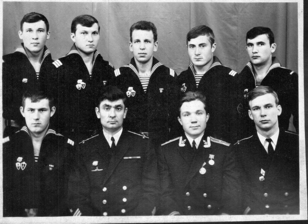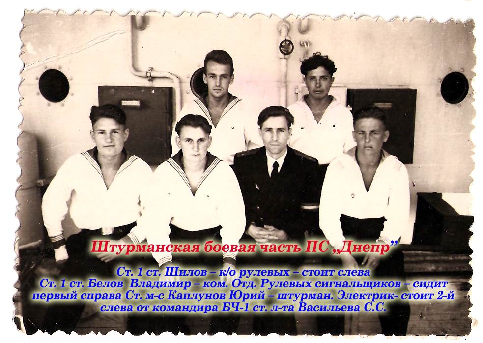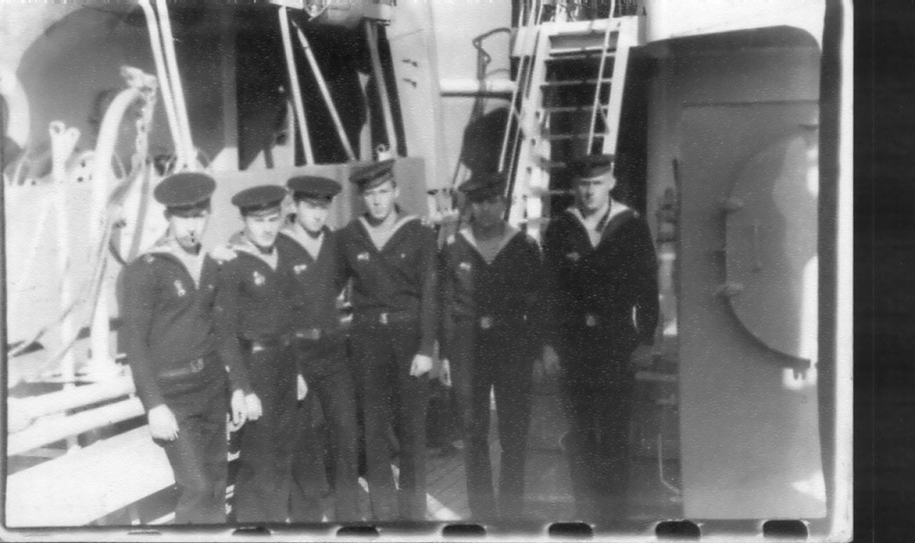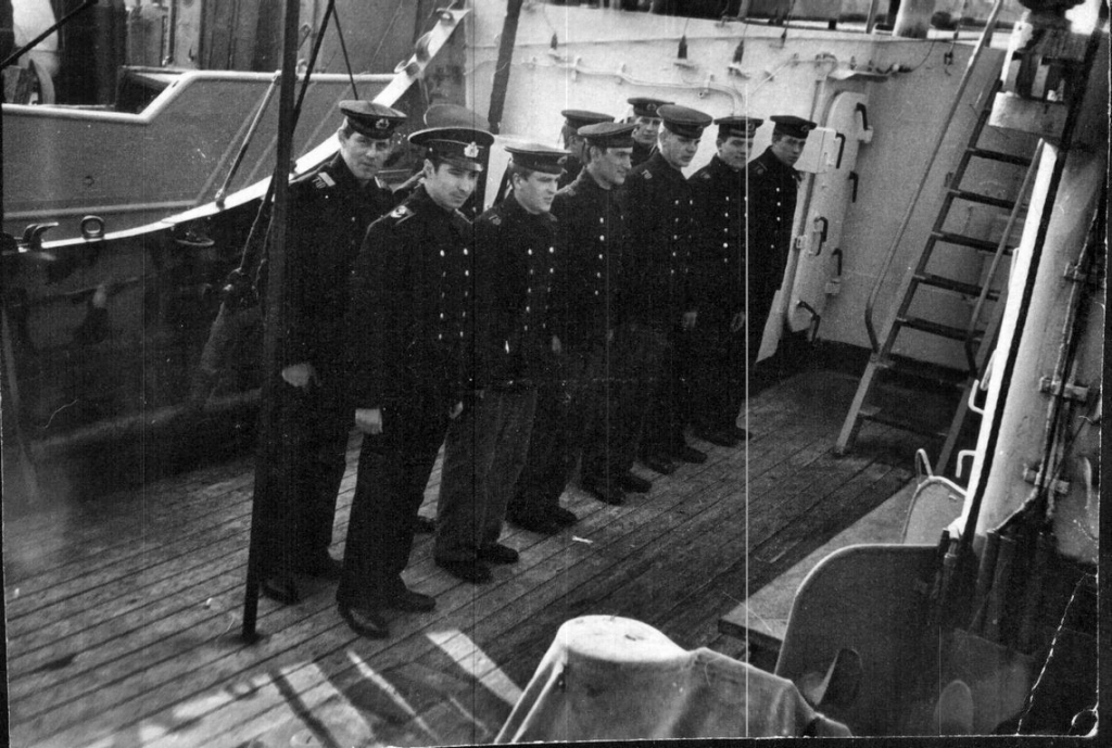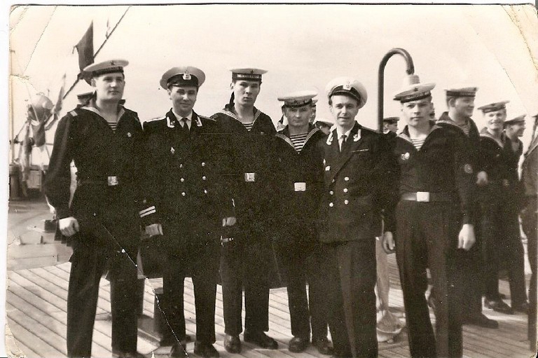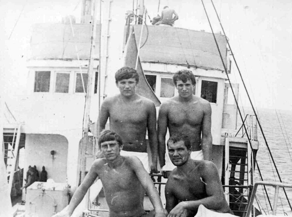 1-й ряд Пырков В. , механик - Оржех, старпом - Тарасов, штурман - лейтенант Кобзарь Н.П.