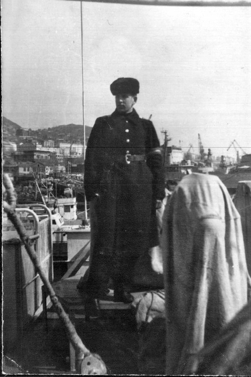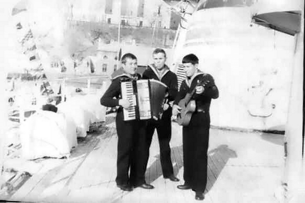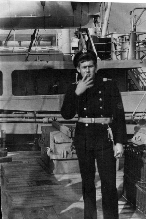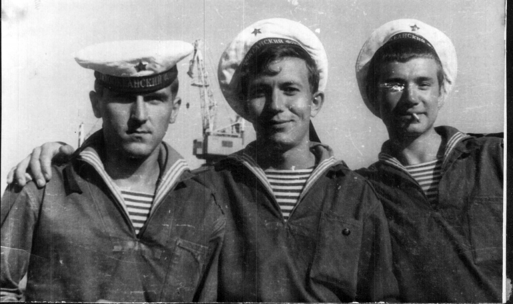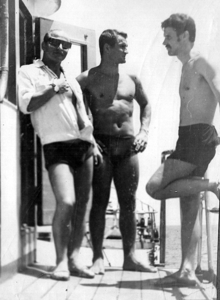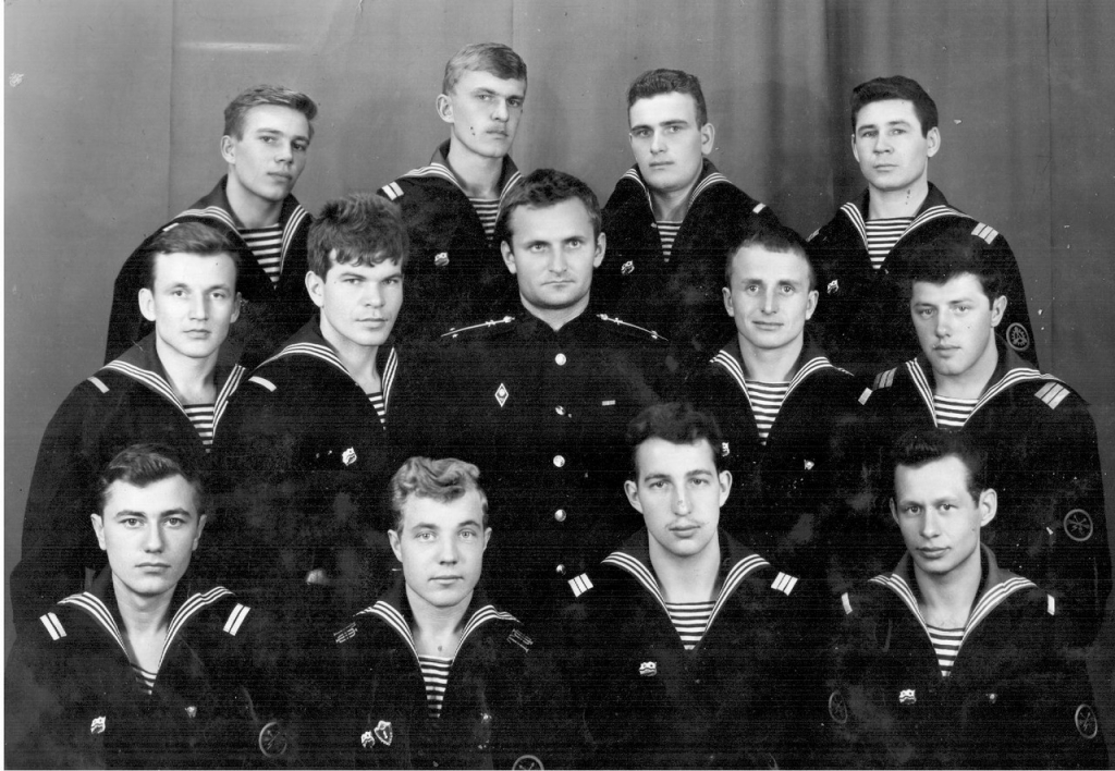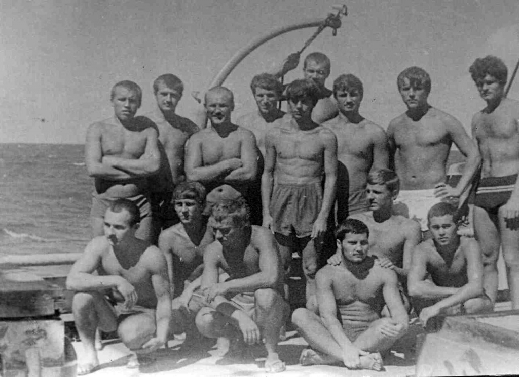 1-й ряд Пырков В. , механик - Оржех, старпом - Тарасов, штурман - лейтенант Кобзарь Н.П.