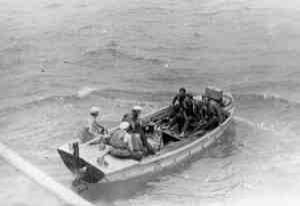" ... А вот так начиналась прогремевшая на всю бригаду , высадка на борт корейского сухогруза, севшего на рифы Парасавелла . Вельбот на воду! Командир приказал взять на "абордаж". В носу вельбота сидят те двое боевых пловцов о которых я писал раньше, которые ныряли за кораллами для штаба КТОФ..." |