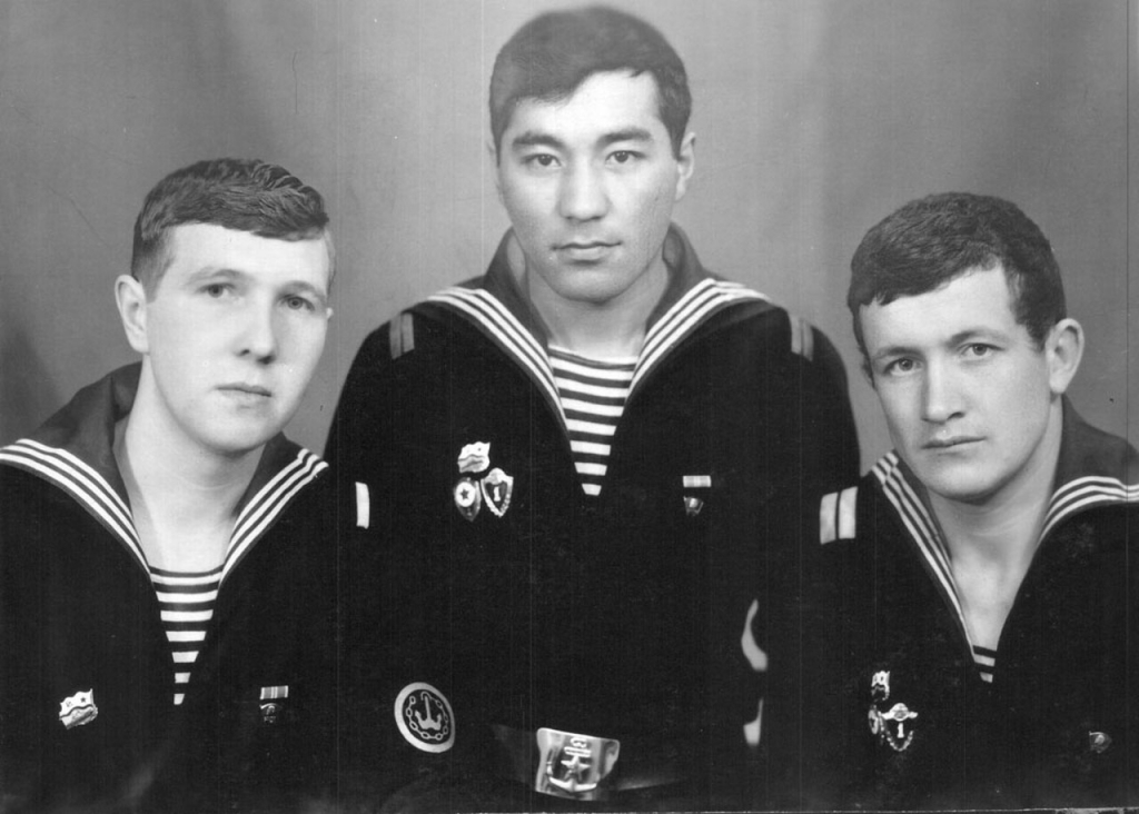 Моряки мрзк "Измеритель", 1 МАЯ 1963г. Слева направо: ком. отделения БЧ-1 КУЗЕВАНОВ, ком. БЧ-1 ИСАЕВ, МАСЯГУТОВ Э.Г., штурманский электрик (ФИО забыл), ком. корабля КОЗЬМИН А.Б., рулевой-сигналщик ПРЕСНЯЕВ.