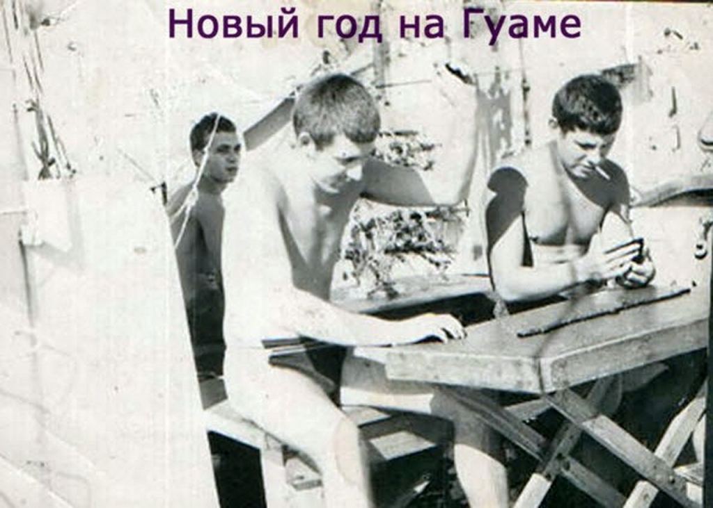 "...И снова в районе о Гуам. Позади нас просматривается косой парус из брезента - это так называемый "черт". "Черт" это наш кондишен Советской эпохи. Это только на фотках кажется что служба наша была типа прогулки на туристическом параходе. На самом деле все было не так романтично. На кораблях типа "Океан" посты РР находились в трюмах, а там ни вентиляции ни тем более кондиционеров не было. Все районы несения БС находились в тропиках, температура наружного воздуха 35-40 в тени , в трюме был вообще полный "пипец", а вахта 6 часов через 6. Вот и придумали моряки свое ноу-хау. Из куска брезента шили парус, натягивали его на грузовой стреле корабля, в нижней части паруса пришивали кишку из того же брезента,внутрь кишки вставляли обручи для жесткости, получалось что-то в виде шланга большого диаметра, вот конец этого шланга вставляли в приоткрытый люк трюма. Ветерок дул в парус, а дальше по этой самой кишке попадал к нам в посты, вот так и спасались. И так было почти на всех наших кораблях, только на ЭОС "Забайкалье", на котором я ходил в район атолла Кваджелейн были кондиционеры и даже работали , дули и в кубрики и на боевые посты, это был конечно балдеж по сравнению с кораблями проекта "Океан", "Тунцелов"..." Василий Шумаков. |