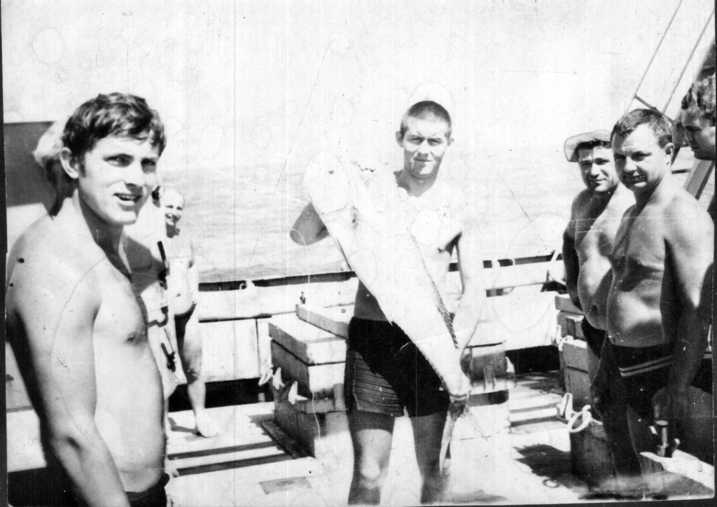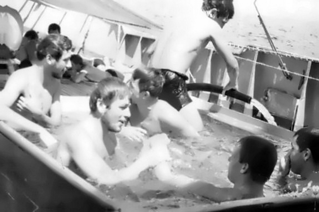 На мрзк "Амперметр", приём ванны. Слева направо Устюгов, Левченко и т.д. |