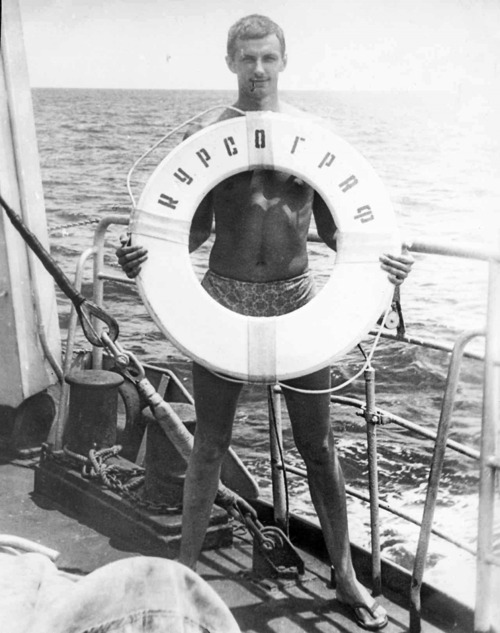 Во время рыбалки очень "активное" участие принимал замполит, он бегал от борта к борту и пытался руководить "путиной", внося хорошую долю сумятицы. Тульчинский О.Д. наблюдал рыбалку из ходовой рубки и видно не выдержал, он по громкой связи обратился к старпому: "Саша помочись на Витю, он очень перегрелся".