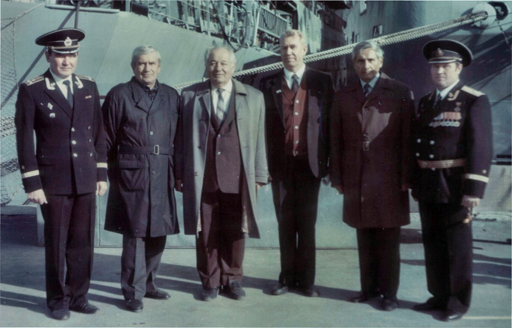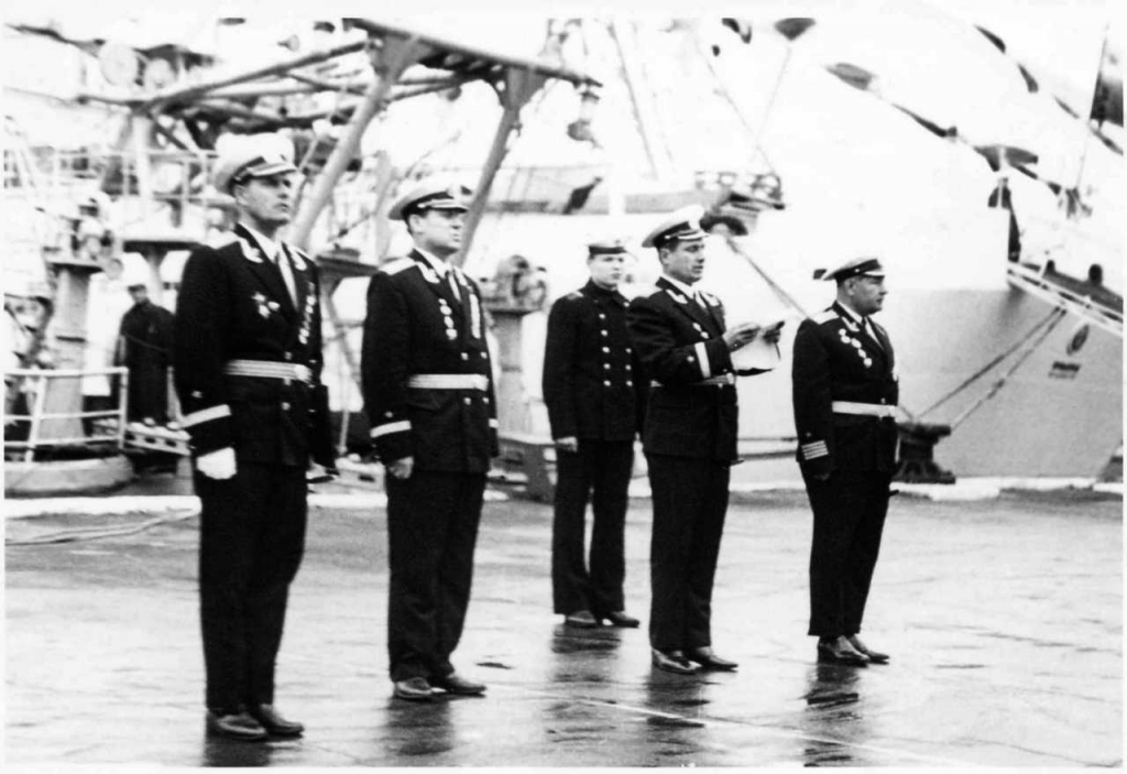 Слева направо: капитан 1ранга Карасёв, капитан 1 ранга Рябченко (ГШ ВМФ), капитан 1 ранга Лукаш Д.Т., капитан 1 ранга Клёпиков, капитан 2 ранга Погосов . |