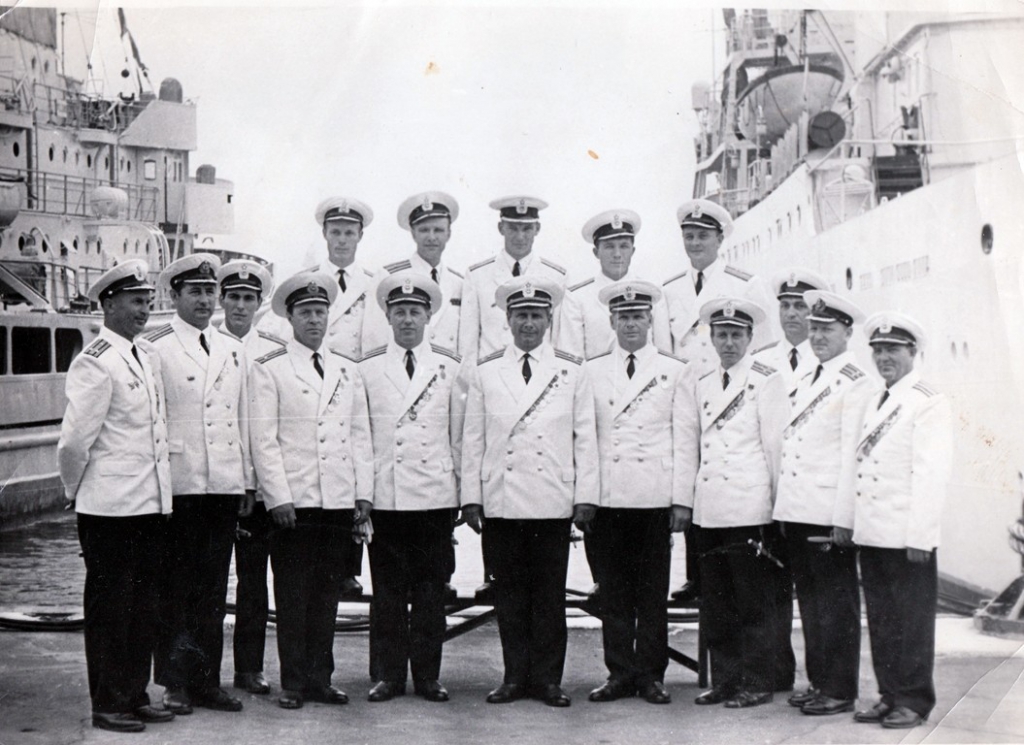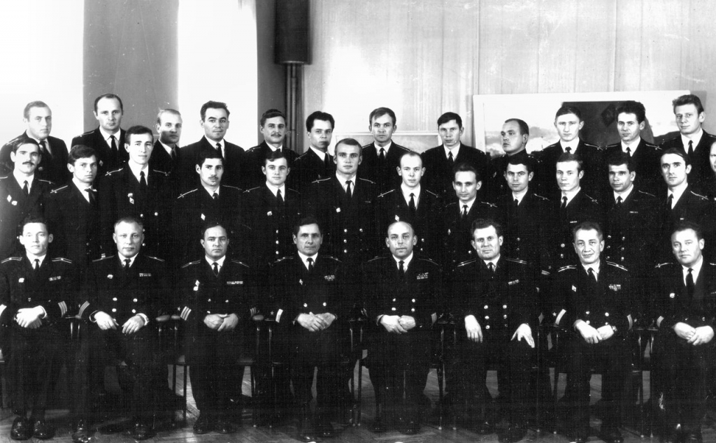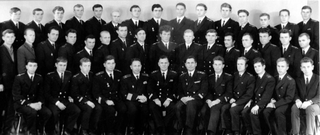 2 ряд:......., ..........., Пономарёв-ком БЧ-4 Сарычев, Пивкин Ю.М.-флаг штурман,Демеев Я.А-врач, ......., Кораблёв П.Н.,Росляков Н.-инструктор ПО, Петухов-оператор сл3 приморья, Каретников С.И.-офицер штаба, Рябокрас С.П.-ком-р сарычева,Пантелеев Ю.А.-ком-р протрактора, Фоменко В.Г.-офицер штаба, ........., Евстафьев ю.А.-ком БЧ-1 Вега, Кошкарев - комБЧ-1 Забайкалье, Карпухин А., Долгополов В., Каравайкин В.В., Голубев -ком ГС-7, Рябов П.С. ком-р Челюскина, Ваулин, ......., Разъдьяконов, Боярко С.В.-нРТС Измеритель,............
