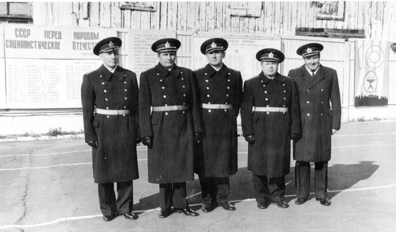 Владивосток, 29.02.1971 г. Офицеры РУ штаба ТОФ, центра РЭР, информационного центра и частей Разведки флота. Слева направо, первый ряд: капитан ...., капитан 1 ранга Д.Т. Лукаш, кап.1 ранга И.А. Ханжа, кап.1 ранга А.Т. Штыров,кап.1 ранга В.А. Домысловский, кап.1 ранга В.Ф. Лопаткин, кап.1 ранга П.А. Сурженко, полковник В.А. Касаткин; второй ряд: кап.2 ранга В.К. Дудин, кап.3 ранга А.В. Суров, кап. 3 ранга Барбарийский, подполковник А.Л. Шлюфин, кап.1 ранга В.М. Островский, кап. 1 ранга Пантелеев, полковник Н.С. Табачко, Б.Г. Мамаев, кап.2 ранга Игнатьев, кап.3 ранга Г.С. Бобков; третий ряд: капитан ..., кап.1 ранга А.А. Пушкин, подполковник Н. Плахута, кап.3 ранга А.Ф. Ефремов, кап.3 ранга И.И. Лубский, кап. 3 ранга Г.Д. Злобин, кап.л-нт В.И. Данилов; кап. 1 ранга А.И. Косых, ..., пятый, подполковник А.Я. Бобылев, ... , седьмой, кап.л-нт В.Н. Графов, майор ... , кап.2 ранга Н.Я. Соколов. |