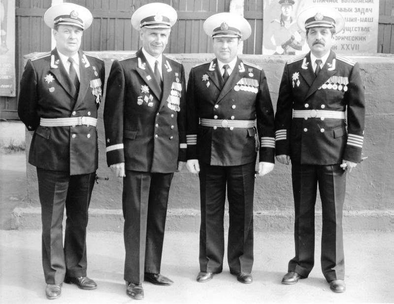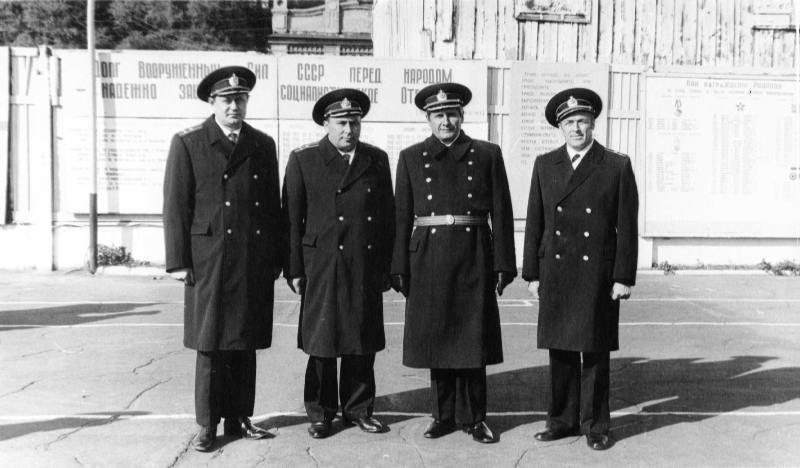 20.10.1978 год. Справо налево: начальник разведки ТОФ капитан 1 ранга Леонов Г.Ф., капитан 1 ранга Лукаш Д.Т., начальник Центра РЭР капитан 1 ранга Шиш П.И., начальник кполитотдела центра РЭР капитан 1 ранга Желонкин А.М. |
