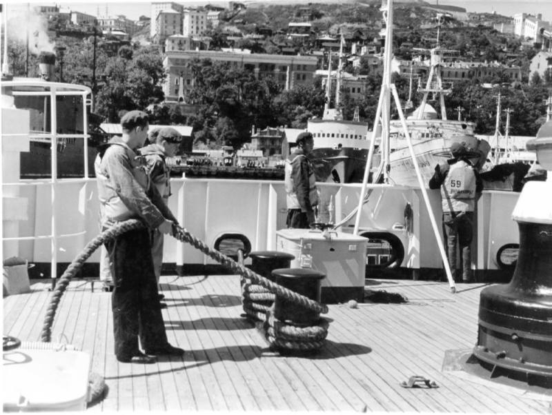 разведывательного корабля «Приморье». Руководит ютовой швартовной командой